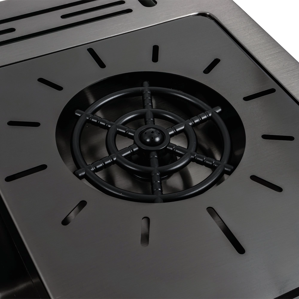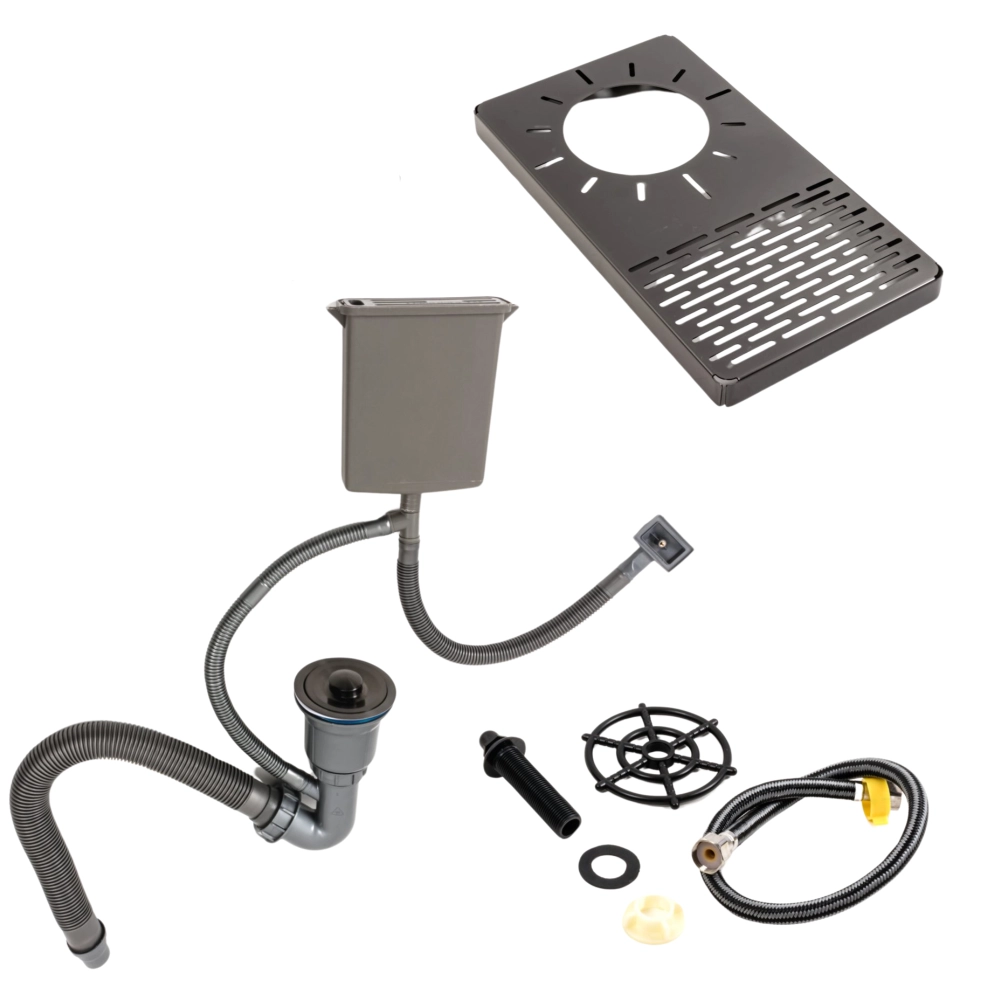Кухонна мийка обладнана двома отворами під дозатор та змішувач, щоб забезпечити зручність в процесі приготування їжі. В комплекті йде підставка для ножів, ополіскувач для склянок, круглий сифон, забезпечуючи бездоганну гігієну вашої кухні.