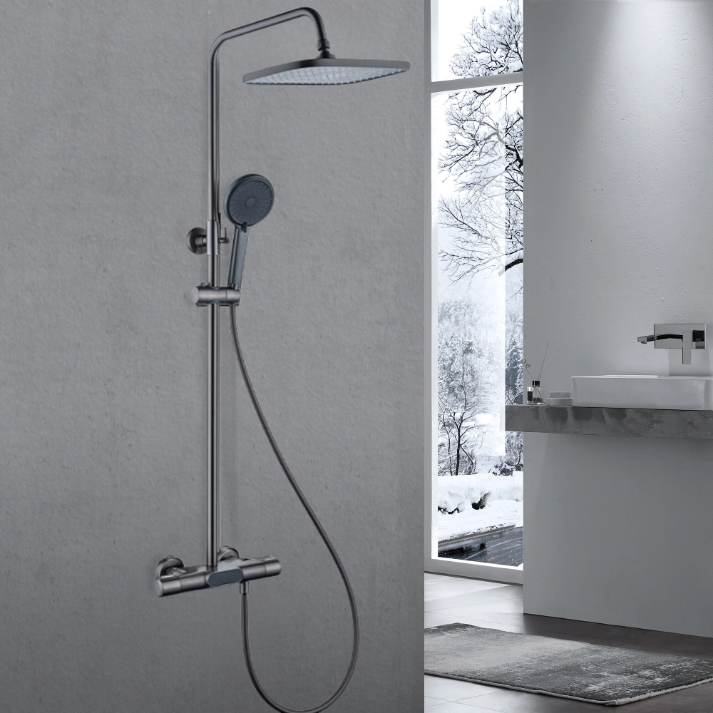 Душевая колонна с термостатом NES892 Platinum изготовлена из высококачественной черной латуни, эта душевая колонна не только привлекает своим элегантным дизайном, но и обеспечивает чрезвычайный комфорт и функциональность.