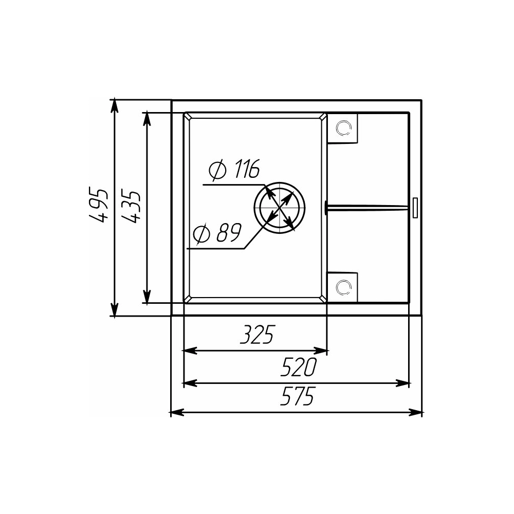 Модель 5850 REYNA оснащена просторной основной чашей (325x435x200 мм), расположенной слева, что обеспечивает максимальное удобство для мытья крупной посуды. Функциональная рабочая поверхность (сушка) идеально подходит для размещения вымытой посуды или размораживания продуктов. Боковой перелив эффективно предотвращает переполнение чаши, гарантируя безопасность.