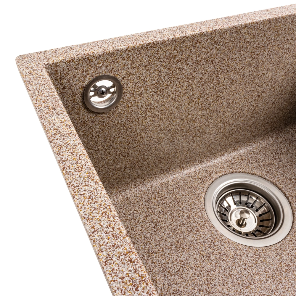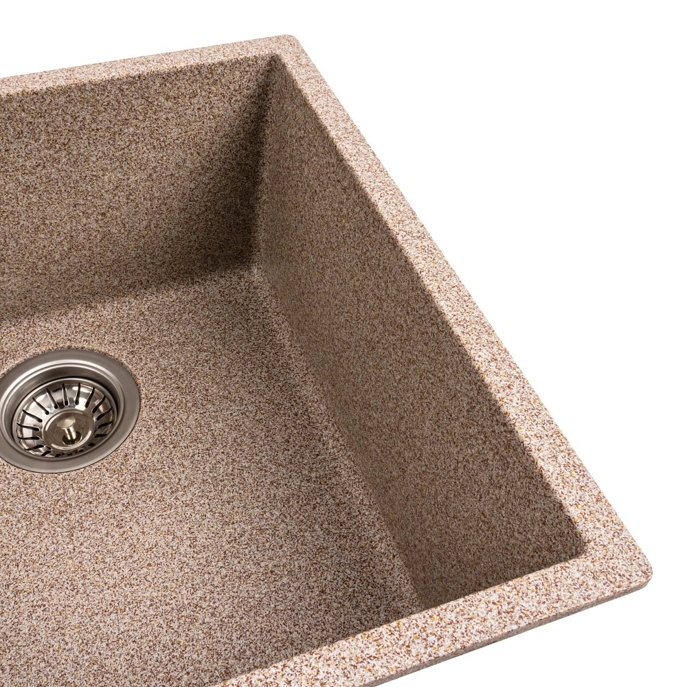 Гранитная мойка для кухни VALESO 4040 RUBA матовая карамель – это изысканное решение для вашей кухни, которое сочетает в себе стильный дизайн и практичность.