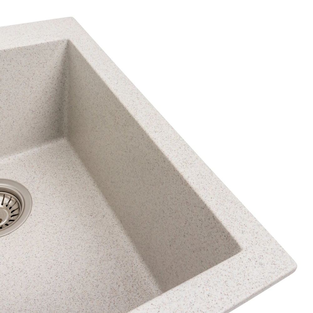 Гранитная мойка для кухни 4150 SOKIL украинского бренда VALESO – это стильная, врезная, прямоугольная мойка, которая своим видом прекрасно дополнит дизайн вашей кухни. Мойка на 80% состоит из кварца и на 20% из очень жесткой акриловой смолы, благодаря чему неприхотлива в уходе, а также имеет большой запас прочности. Мойка имеет матовую фактуру и приятный глазу цвет, что позволяет ей легко вписаться в интерьер кухни. Мойка изготовлена в Украине из качественного немецкого сырья по технологии Solid Surface с соблюдением всех необходимых стандартов.