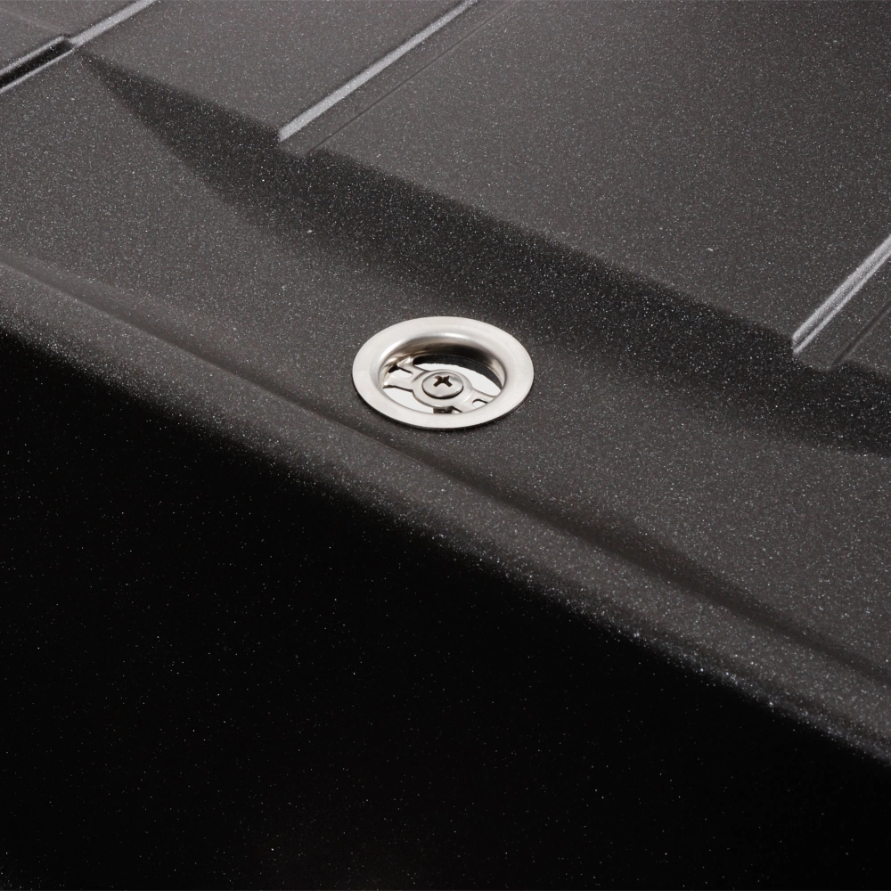 Мойка на 80% состоит из кварца и на 20% из очень жесткой акриловой смолы, благодаря чему неприхотлива в уходе, а также имеет большой запас прочности.