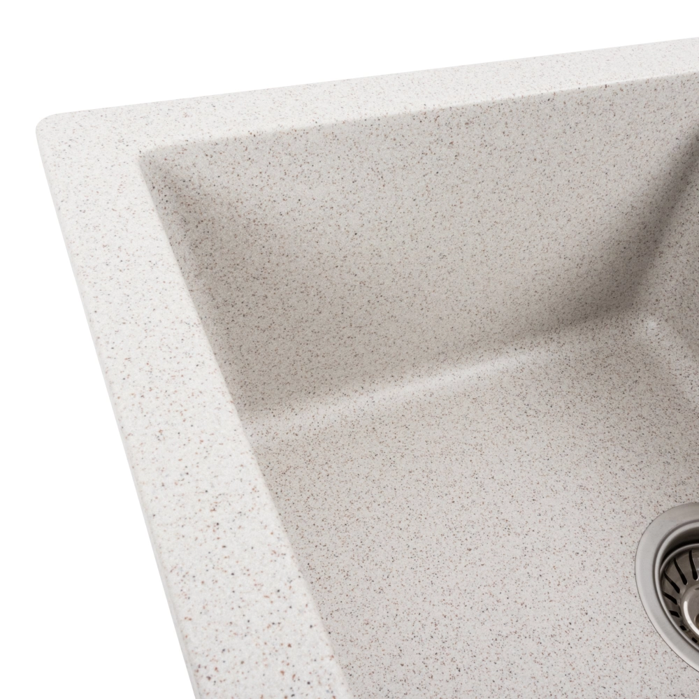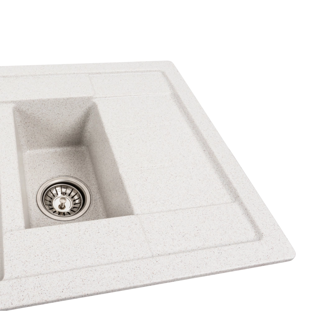 Мойка на 80% состоит из кварца и на 20% из чрезвычайно твердой акриловой смолы, благодаря чему неприхотлива в уходе, а также имеет большой запас прочности.
