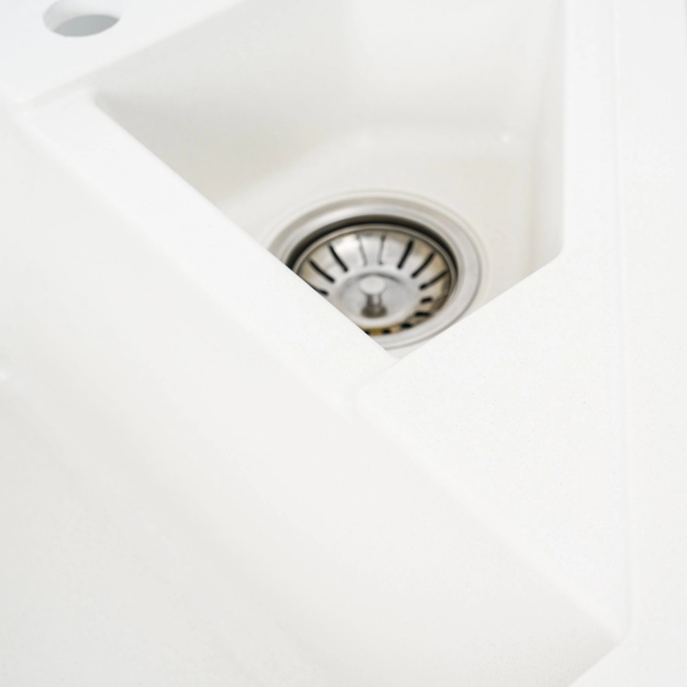Мойка на 80% состоит из кварца и на 20% из чрезвычайно твердой акриловой смолы, благодаря чему неприхотлива в уходе, а также имеет большой запас прочности.