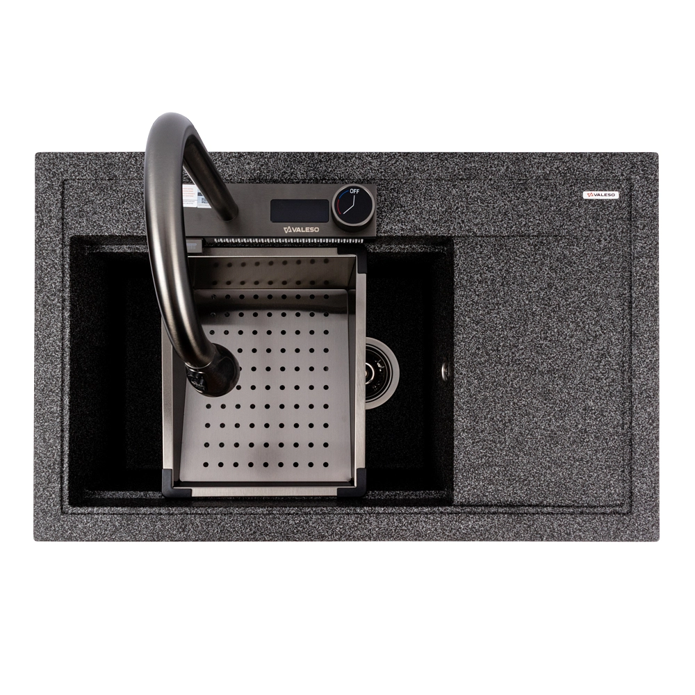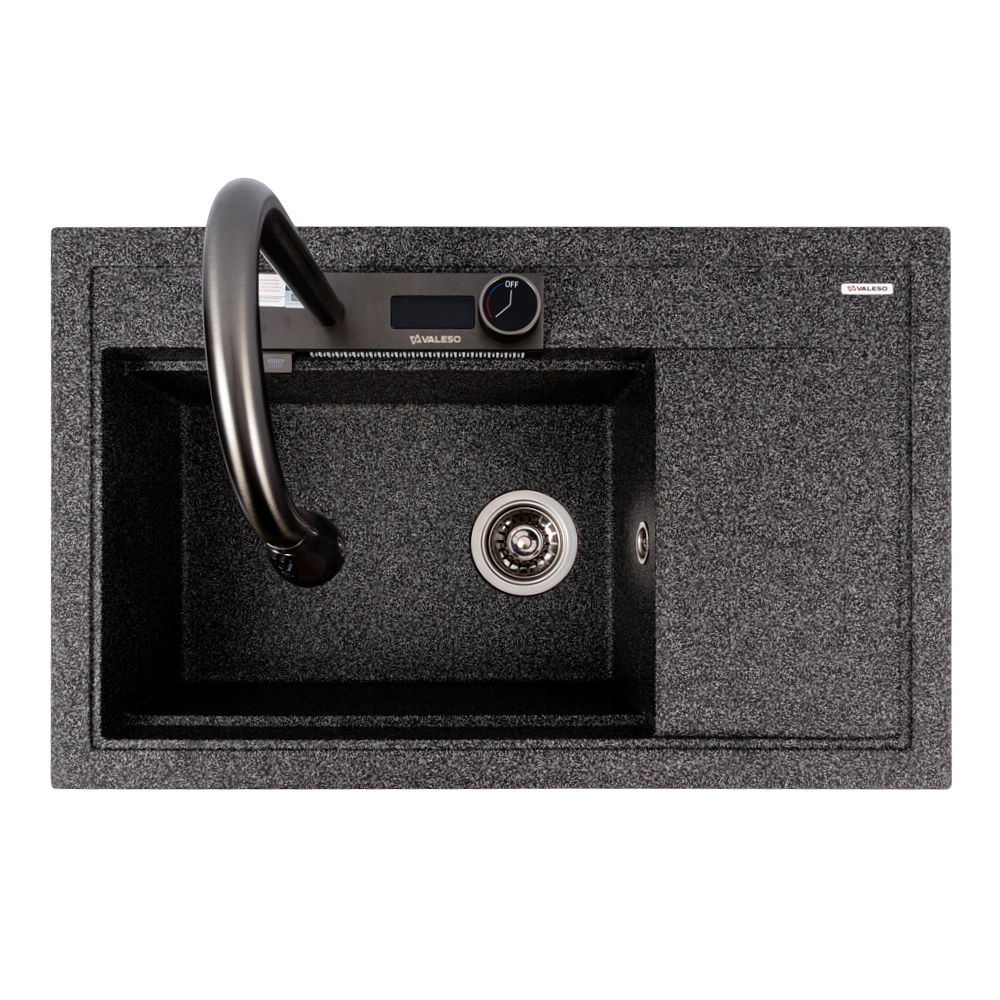 Гранитная мойка VALESO 7950 ATRUM в цвете графит — это удачное сочетание современного дизайна, надёжности и удобства. Она изготовлена из прочного гранитного композита, устойчивого к царапинам, перепадам температур и бытовой химии. Матовая поверхность придаёт изделию элегантный внешний вид и легко очищается.