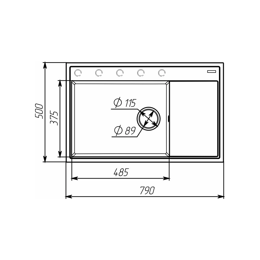 Эта мойка имеет размеры, делающие ее идеальным выбором для разных кухонь. С размерами 790х500х200мм она легко впишется даже в небольшие пространства, обеспечивая высокий уровень удобства и функциональности. Размер чаши 490x380x200мм.