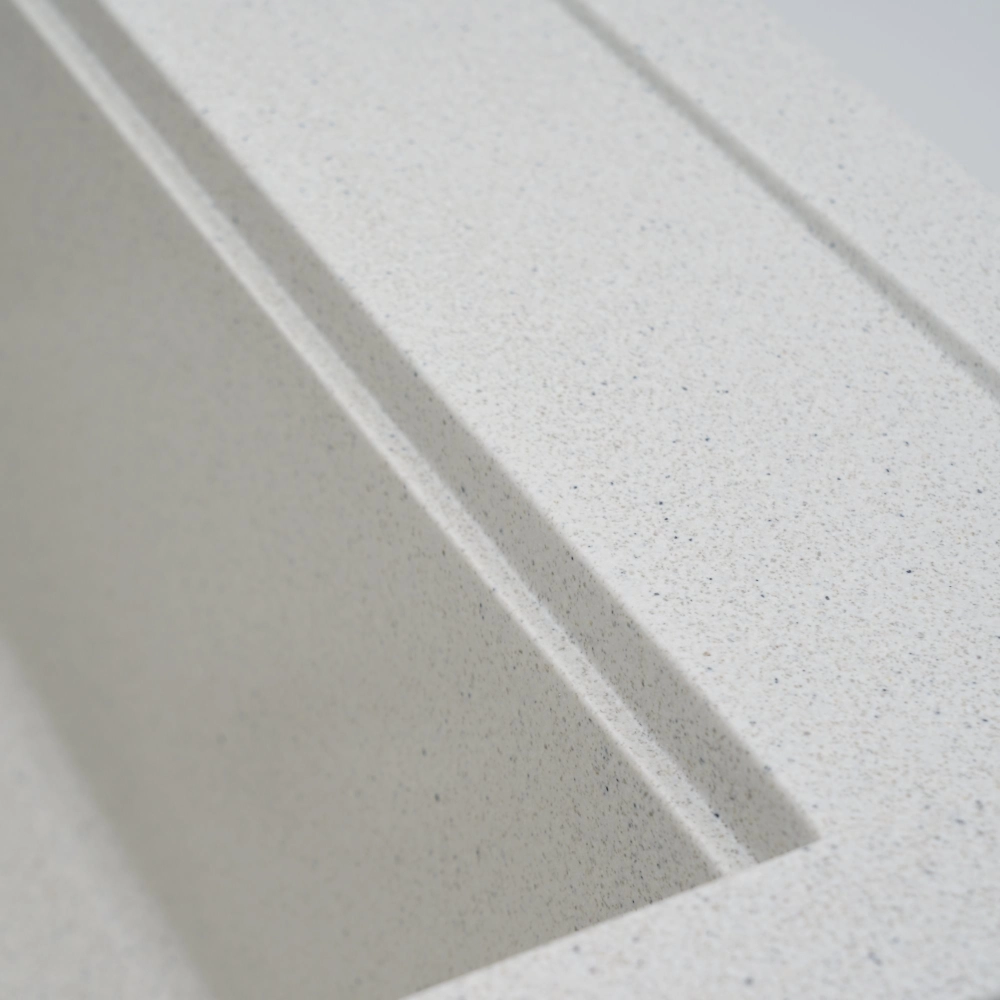 Мойка на 80% состоит из кварца и на 20% из чрезвычайно твердой акриловой смолы, благодаря чему неприхотлива в уходе, а также имеет большой запас прочности.