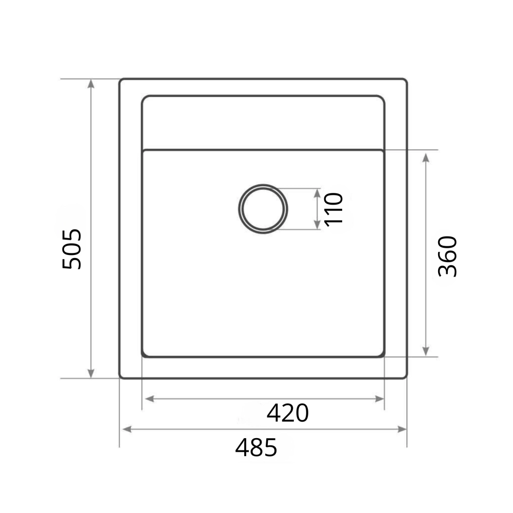 Размеры мойки – 505х485х195 мм, вага – 11,9 кг, сифон - евросифон с широкой горловиной, 110 мм.