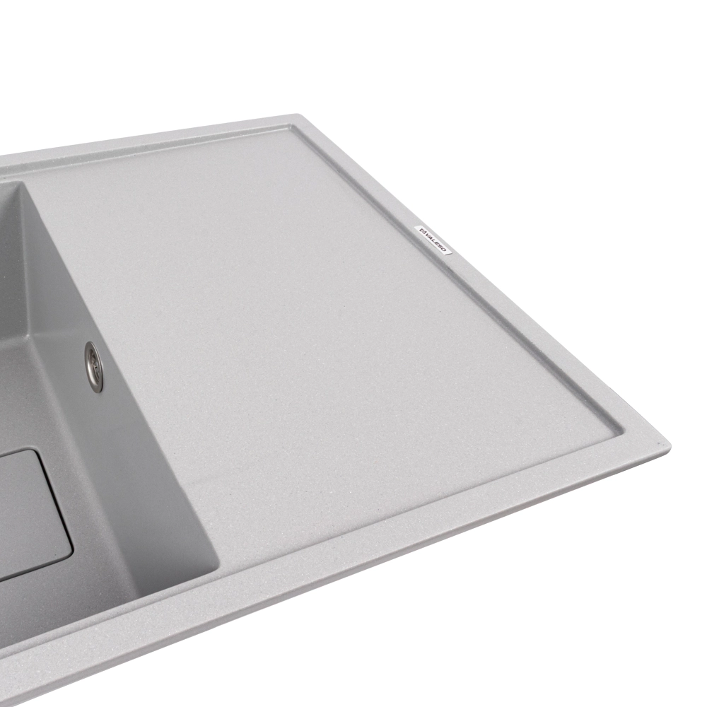 Модель 7850 GALANS имеет элегантный и минималистичный дизайн с матовой текстурой, что придает ей изысканный вид. Цвет серый металлик прекрасно гармонирует с различными стилями кухонных интерьеров, от классики до хай-тека, добавляя им современности и блеска. Высококачественный гранит обеспечивает исключительную устойчивость мойки к царапинам, ударам, высоким температурам (до 280°C) и агрессивным химическим веществам, что гарантирует ее долговечность и легкость в уходе.