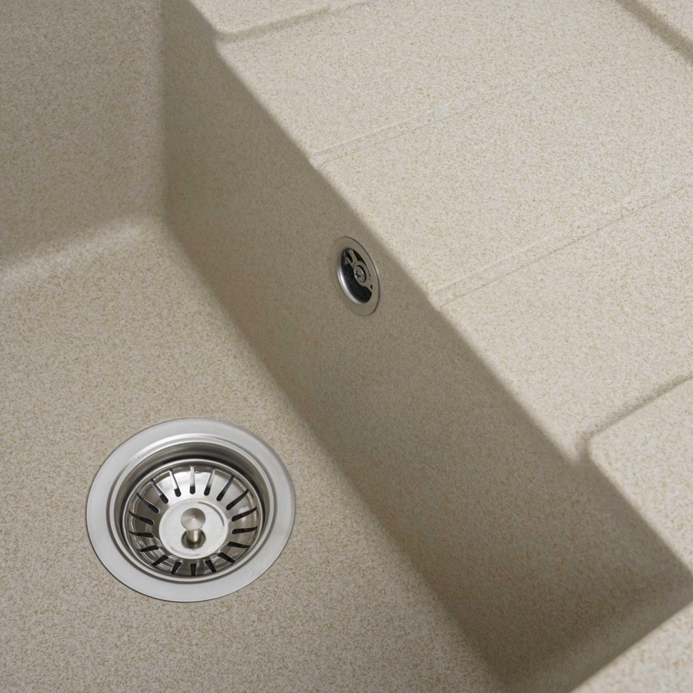Мойка на 80% состоит из кварца и на 20% из чрезвычайно твердой акриловой смолы, благодаря чему неприхотлива в уходе, а также имеет большой запас прочности.