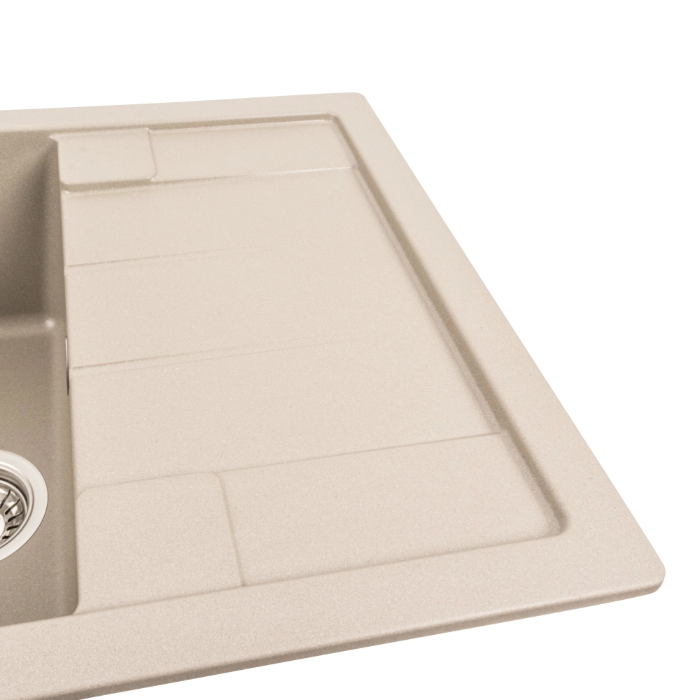 Мойка на 80% состоит из кварца и на 20% из чрезвычайно твердой акриловой смолы, благодаря чему неприхотлива в уходе, а также имеет большой запас прочности.