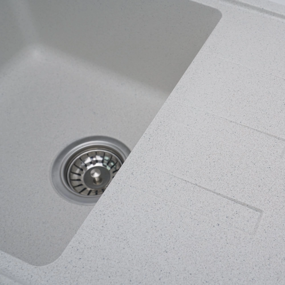 Мойка на 80% состоит из кварца и на 20% из чрезвычайно твердой акриловой смолы, благодаря чему неприхотлива в уходе, а также имеет большой запас прочности.