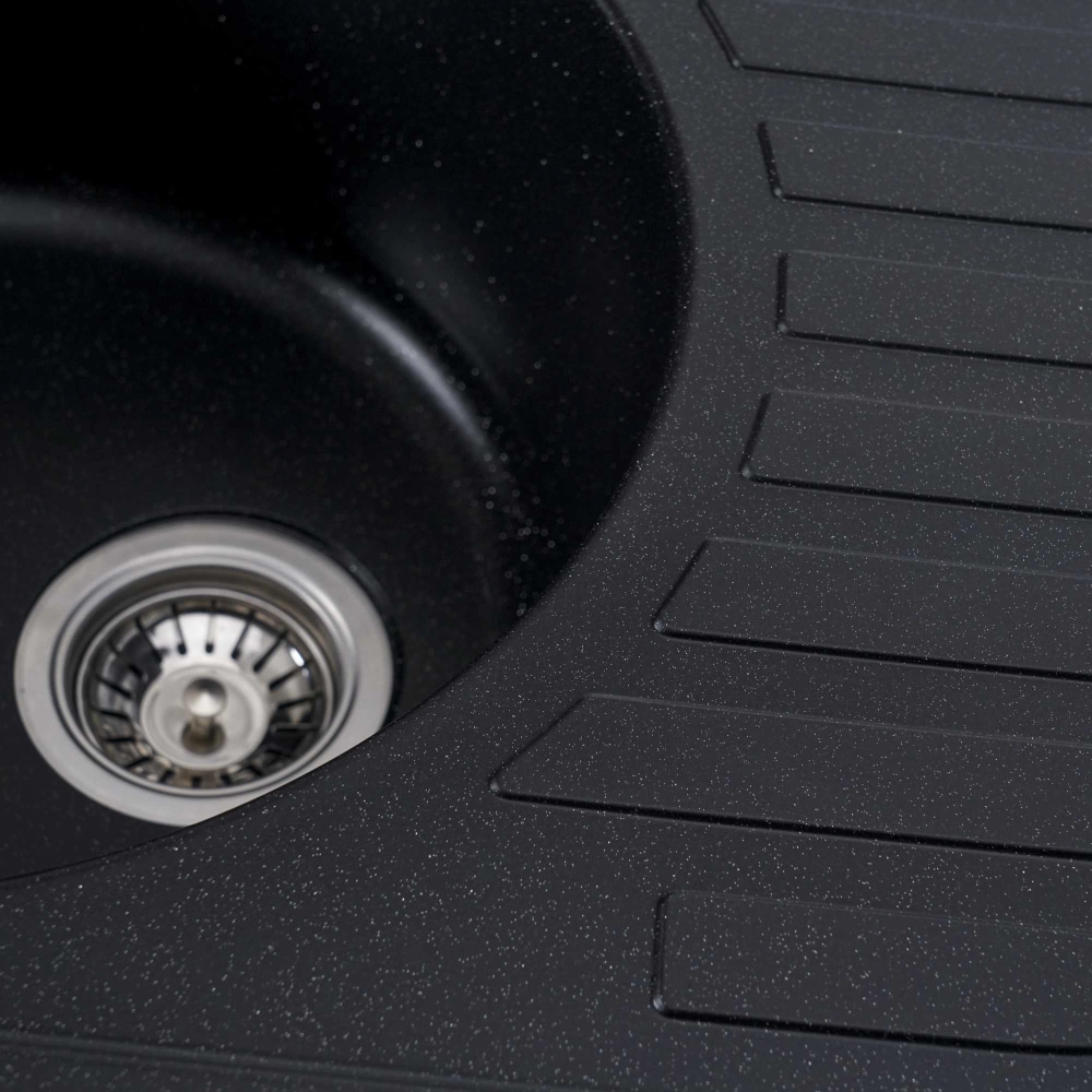 Мойка имеет матовую фактуру и приятный для глаза цвет - черный металлик, что позволяет ей легко вписаться в интерьер кухни.