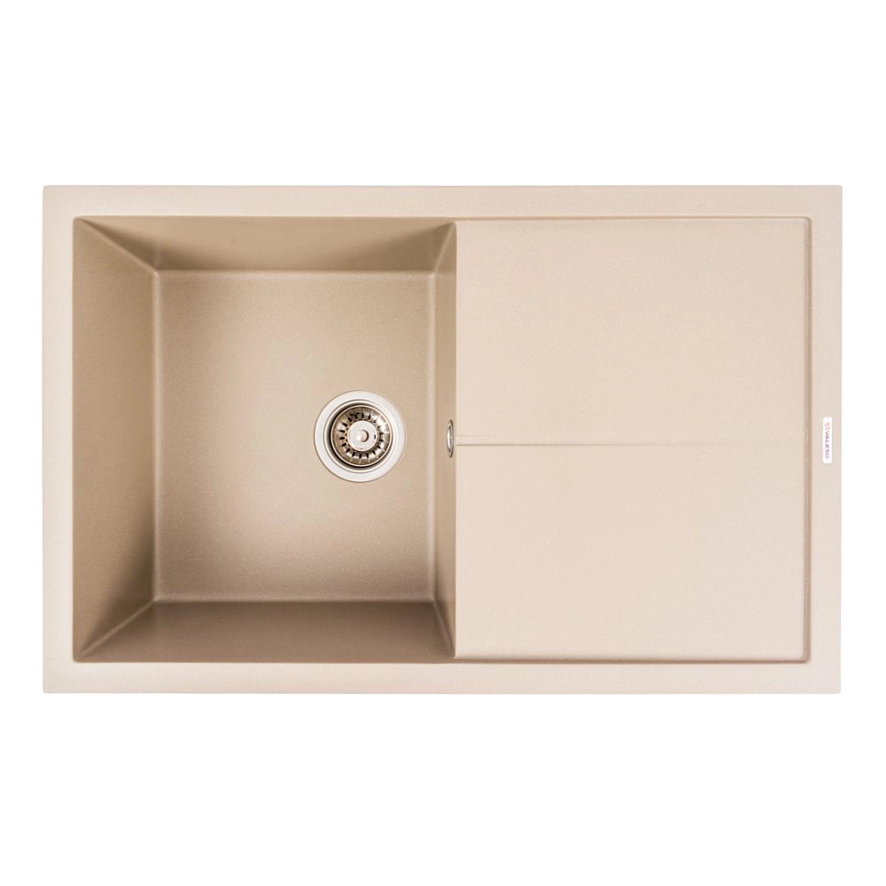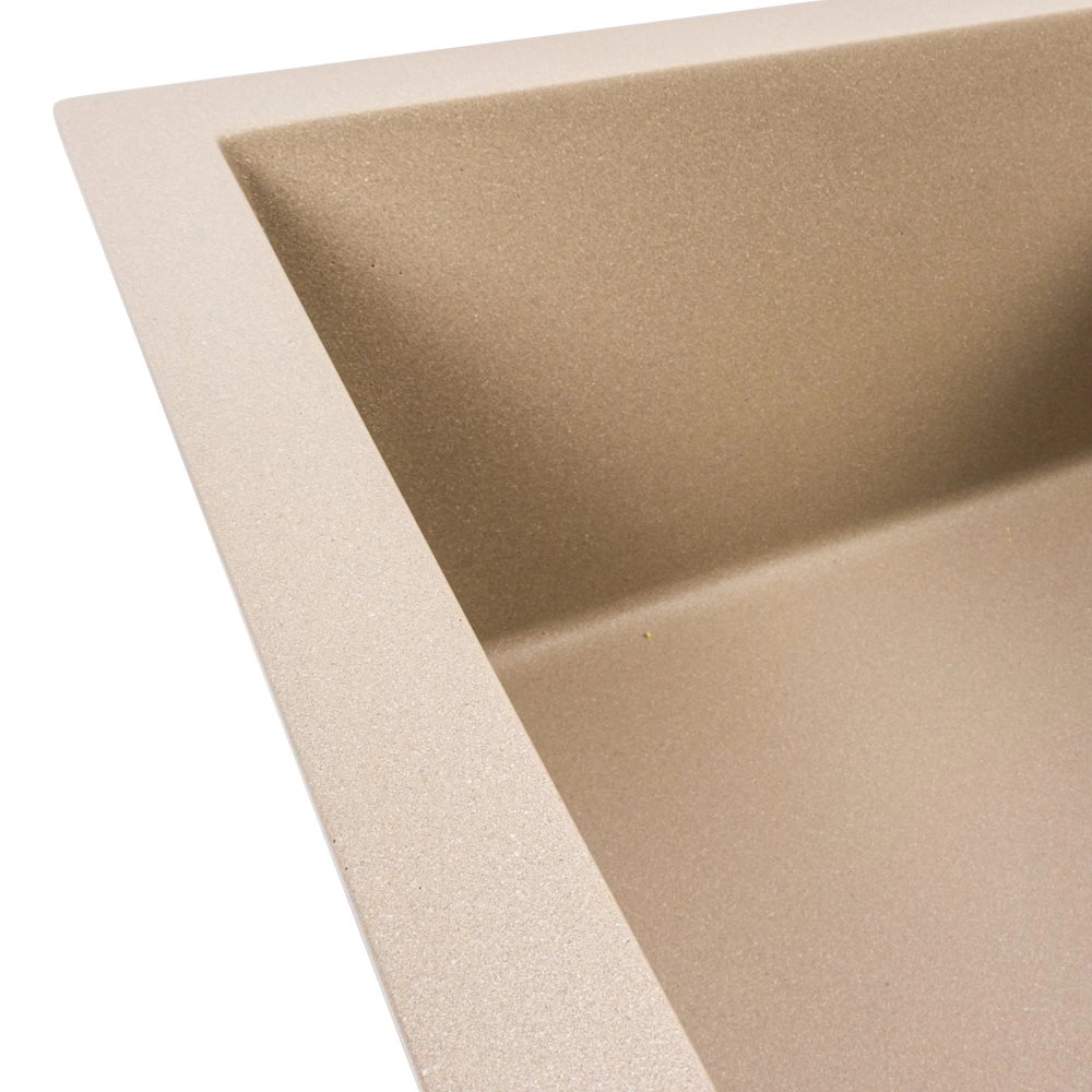 Мойка выполнена из искусственного камня, устойчивого к царапинам, перепадам температур и бытовой химии.