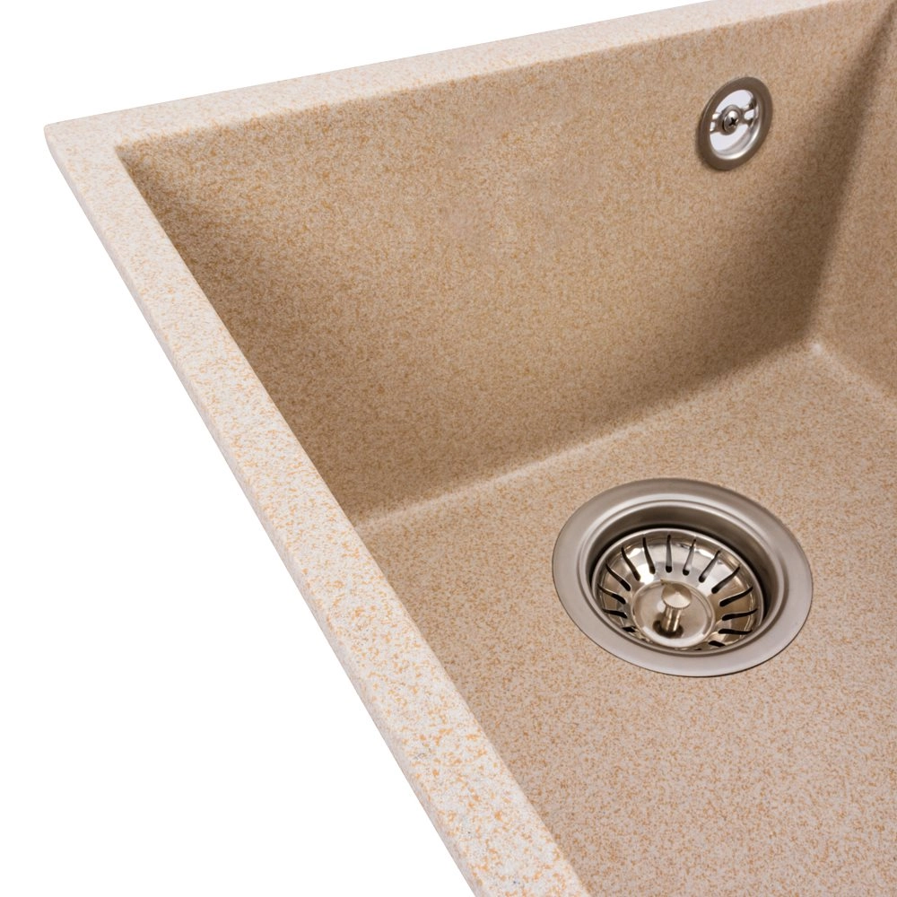 Мойка имеет матовую фактуру и приятный для глаза цвет – сафари, что позволяет ей легко вписаться в интерьер кухни.