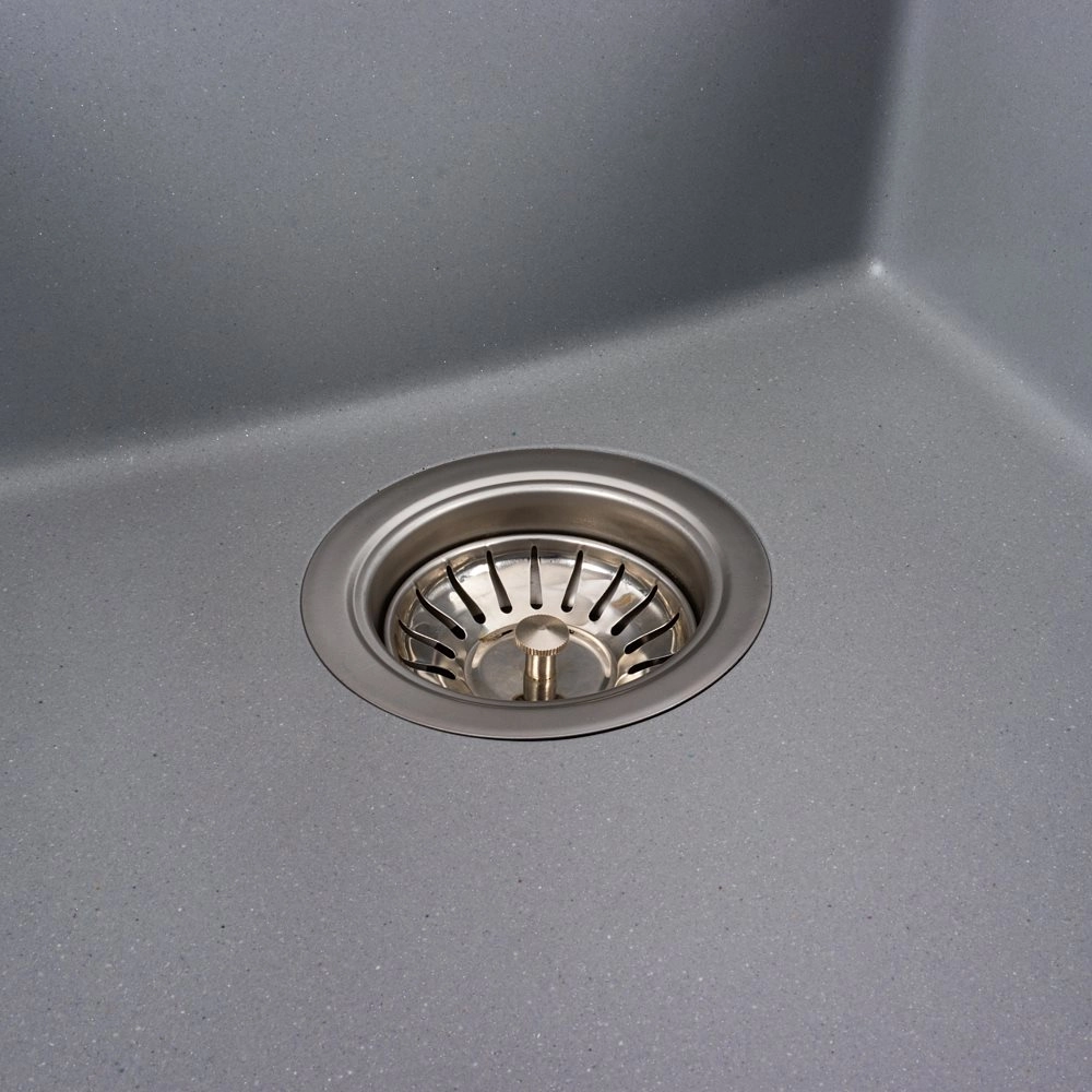 Мойка имеет матовую фактуру и приятный для глаза цвет – серый металик, что позволяет ей легко вписаться в интерьер кухни.