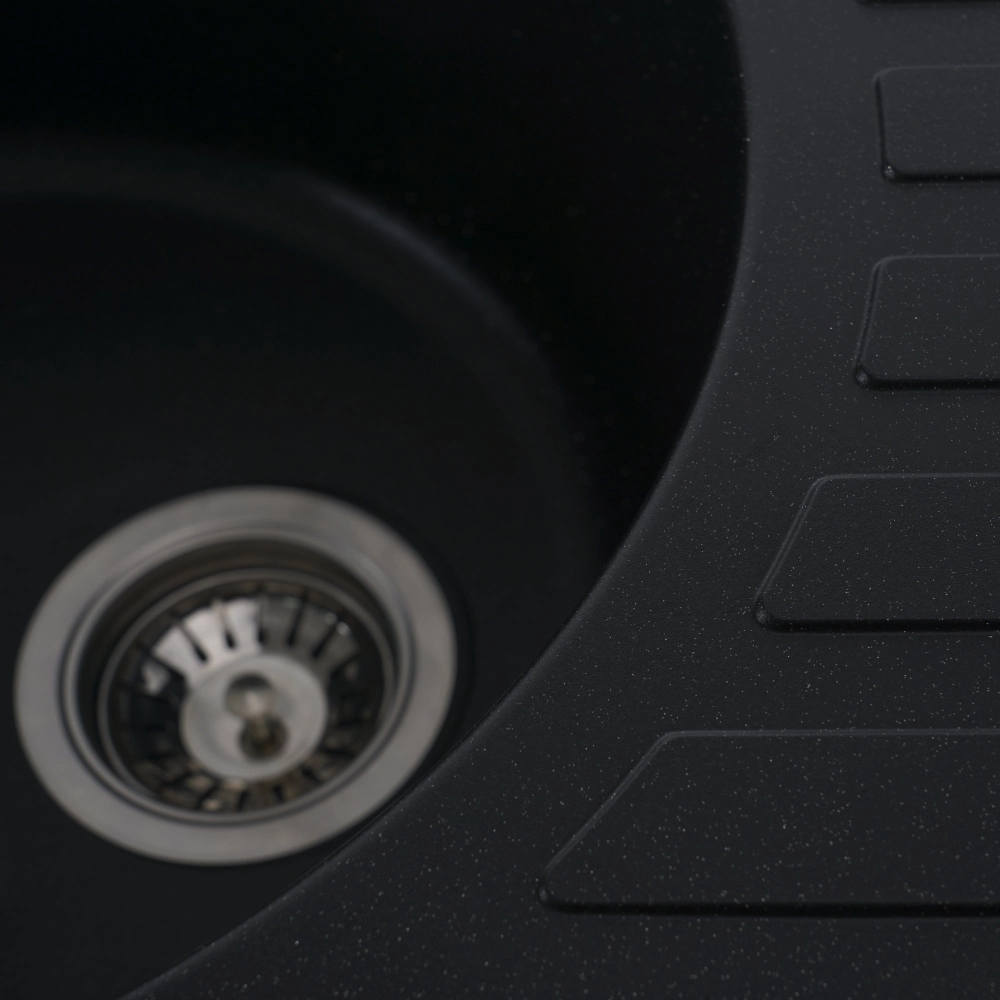 Мойка имеет матовую фактуру и приятный для глаза цвет - черный металлик, что позволяет ей легко вписаться в интерьер кухни.