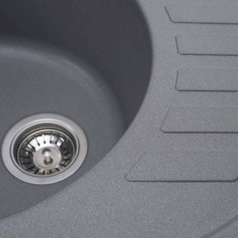 Мойка имеет матовую фактуру и приятный для глаза цвет - серый муссон, что позволяет ей легко вписаться в интерьер кухни.