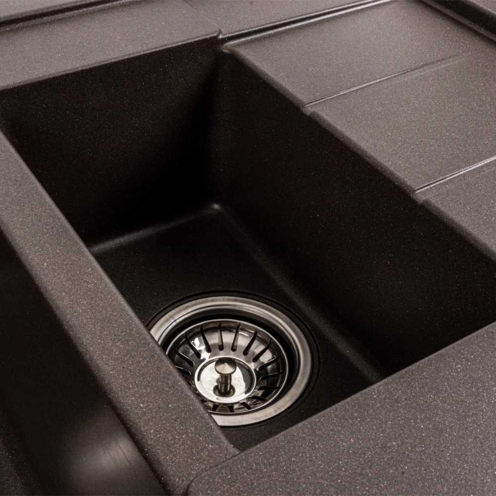 Мойка имеет матовую фактуру и приятный для глаза цвет - Темная скала, что позволяет ей легко вписаться в интерьер кухни.