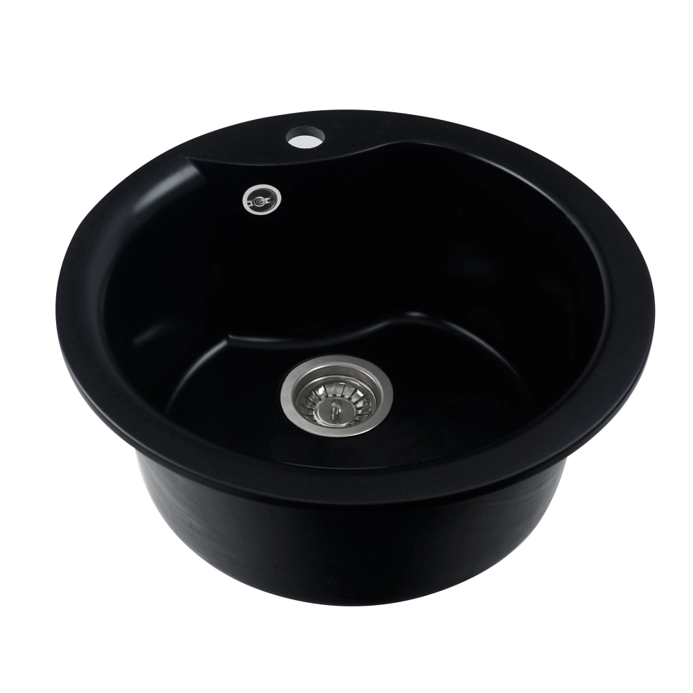 Мойка имеет матовую фактуру и приятный для глаза цвет - черный, что позволяет ей легко вписаться в интерьер кухни.