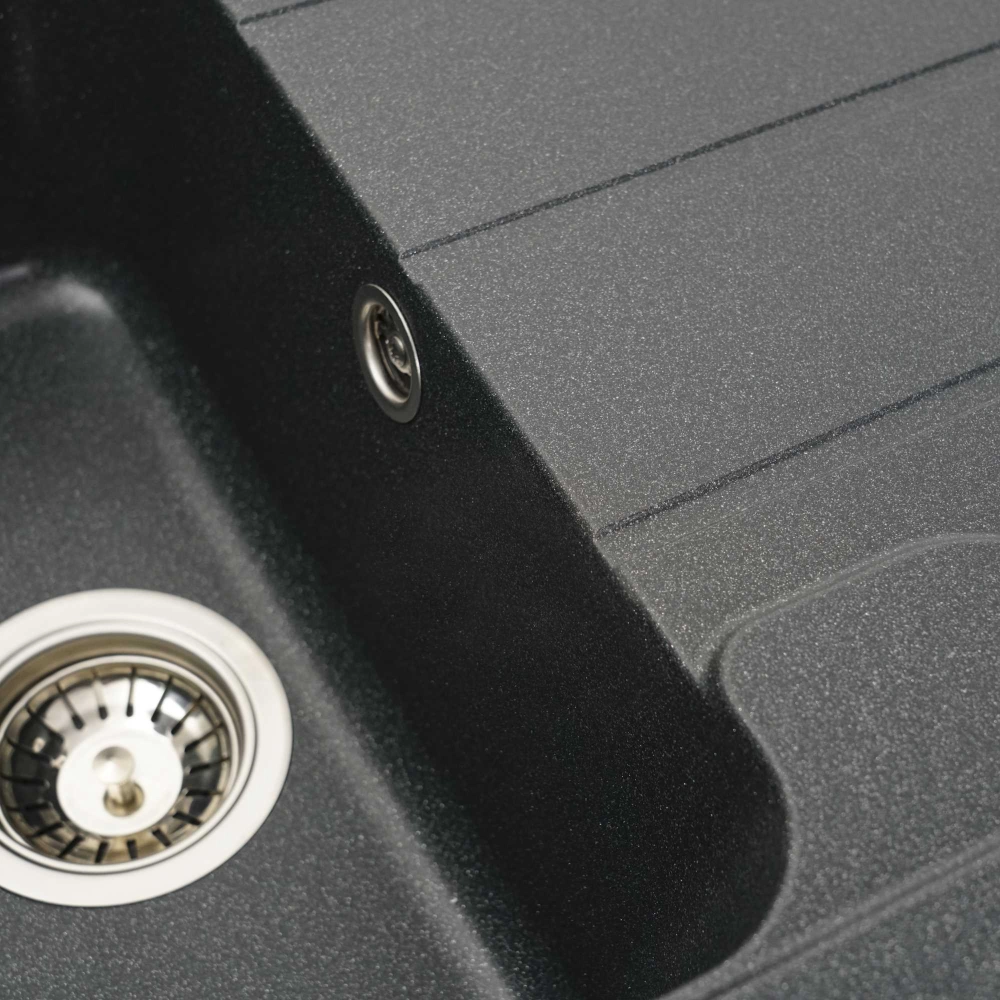 Мойка имеет матовую фактуру и приятный для глаза цвет - антрацит, что позволяет ей легко вписаться в интерьер кухни.