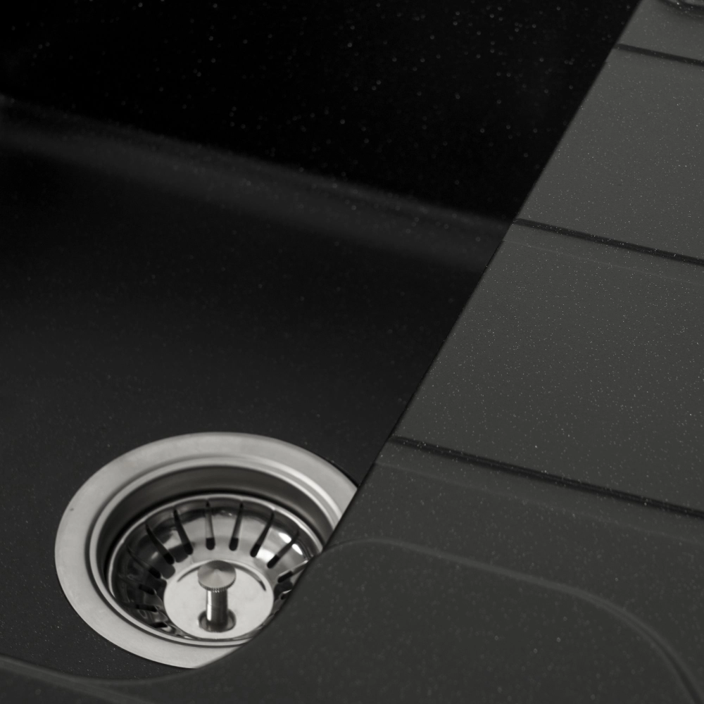 Мойка на 80% состоит из кварца и на 20% из чрезвычайно твердой акриловой смолы, благодаря чему неприхотлива в уходе, а также имеет большой запас прочности.