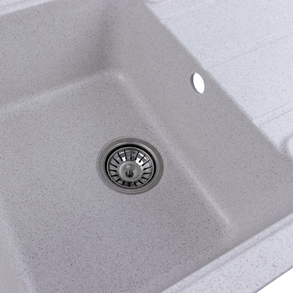 Мойка на 80% состоит из кварца и на 20% из чрезвычайно твердой акриловой смолы, благодаря чему неприхотлива в уходе, а также имеет большой запас прочности.