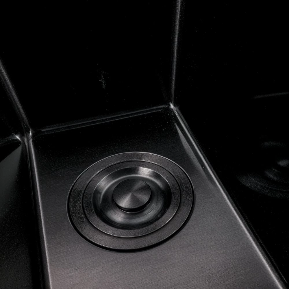 Эта модель сочетает в себе изысканный дизайн и невероятную прочность. Благодаря использованию технологии PVD-покрытия, мойка имеет глубокий черный цвет, устойчивый к царапинам и агрессивным моющим средствам. Серия Handmade гарантирует высокое качество сборки и толщину металла 3,0 мм (верхняя планка) и 0,8 мм (стенки чаши), что обеспечивает надежность и отличное шумопоглощение.
