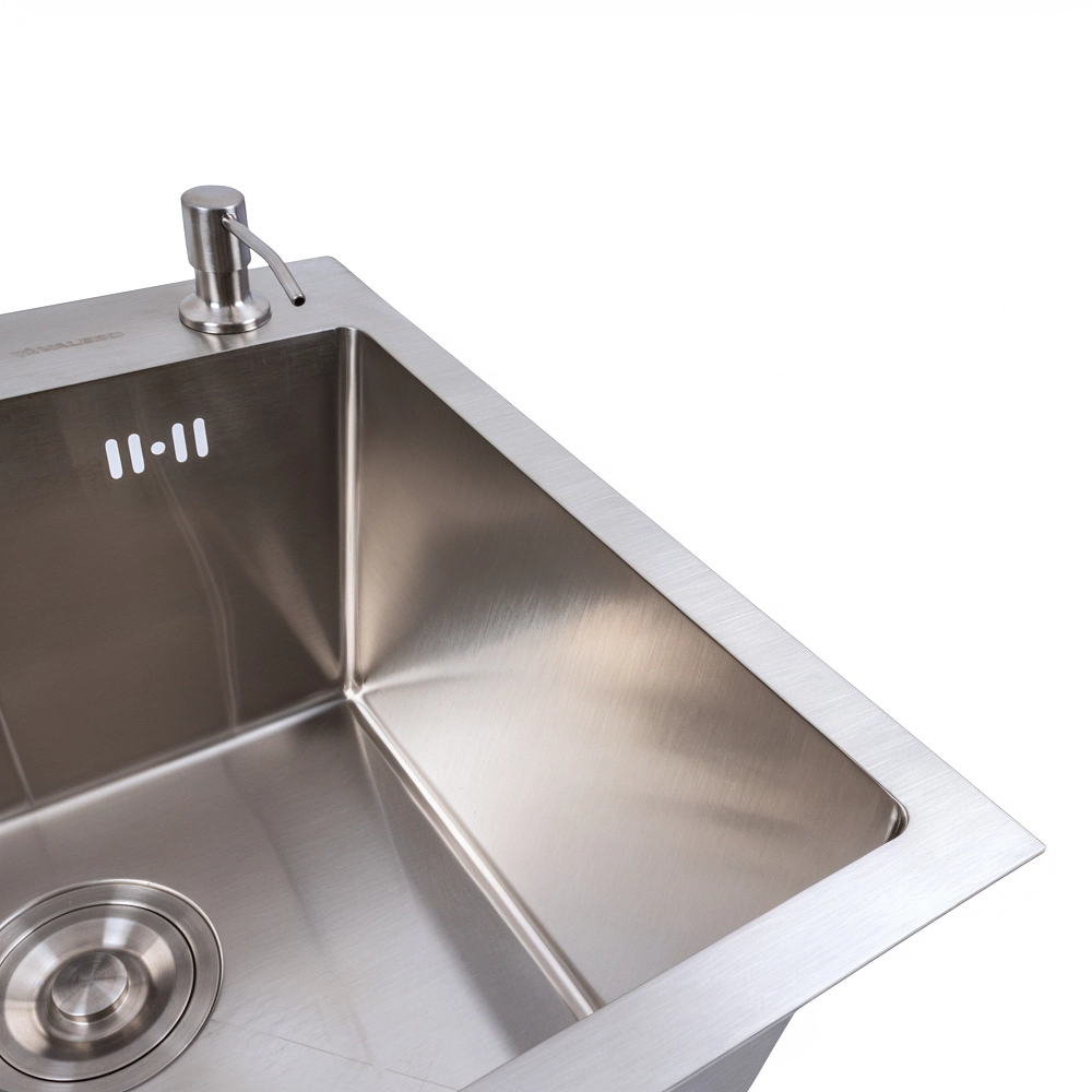 Кухонная мойка 45*45 нержавейка VALESO Handmade (сифон круглый 3,0/0,8) – это отличное стильное решение для кухни небольших размеров. Лаконичный дизайн прямоугольной формы хорошо подходит разным интерьерам кухни.