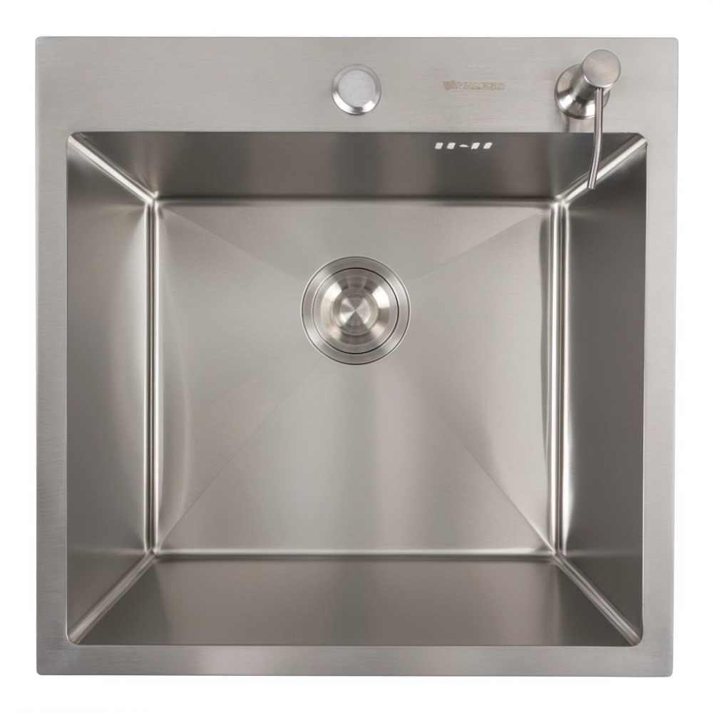 Кухонная мойка 50*50 нержавейка VALESO Handmade (сифон круглый, 3,0/0,8) – это отличное стильное решение для кухни небольших и средних размеров. Лаконичный дизайн квадратной формы хорошо подходит разным интерьерам кухни.