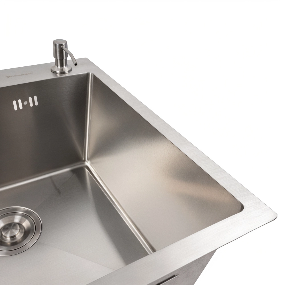 Мойка для кухни VALESO изготовлена из нержавеющей стали SUS 201, что гарантирует ее долговечность. Покрытие мойки защищает ее от царапин потемнения и налета. Такая кухонная мойка не опасается высоких температур и влияния средств бытовой химии.