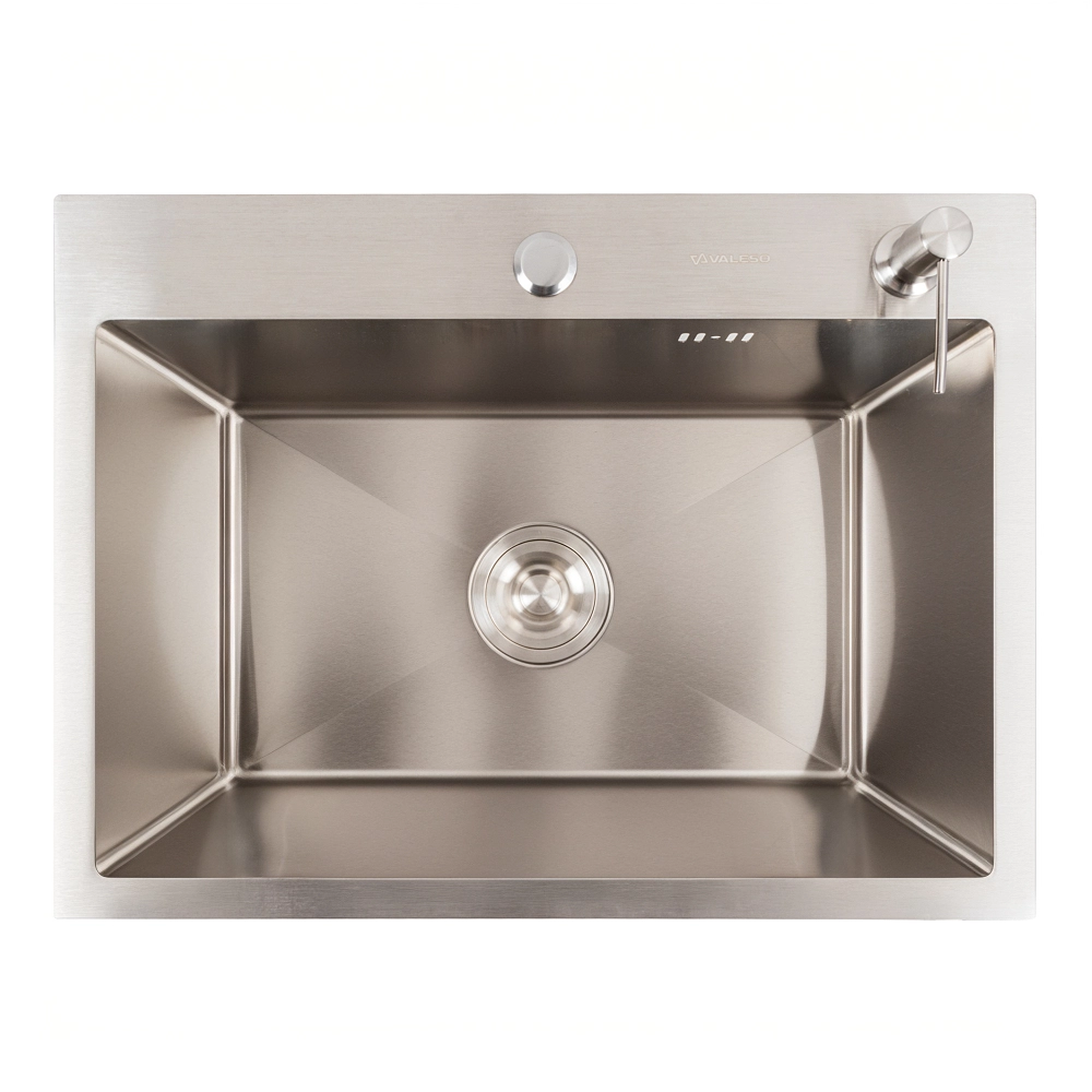 Кухонная мойка 58*43 нержавейка VALESO Handmade (сифон круглый, 3.0/0.8) это отличное стильное решение для кухни небольших и средних размеров. Лаконичный дизайн прямоугольной формы хорошо подходит разным интерьерам кухни.