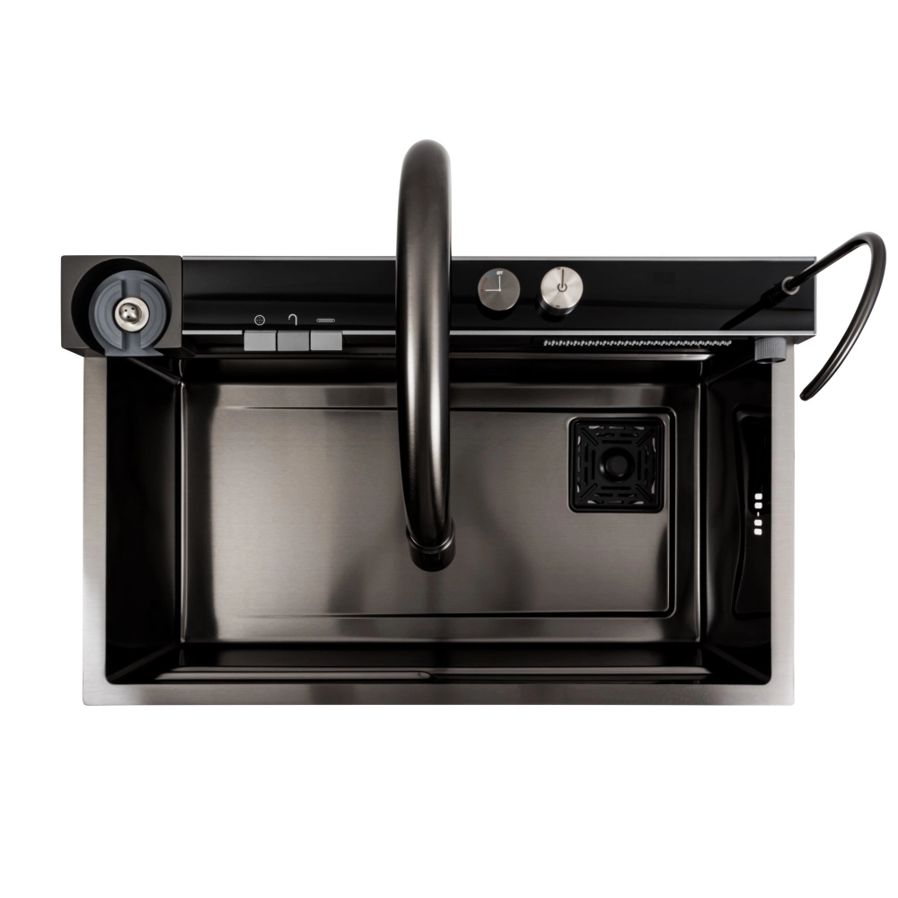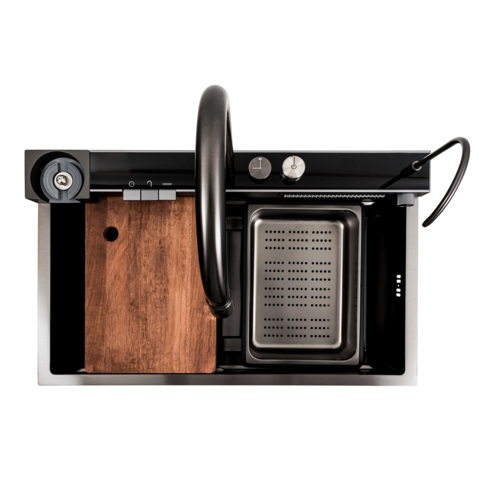 Кухонная мойка 75*46D PVD черная Platinum Handmade "ВОДОСПАД" - невероятно популярная кухонная мойка, настоящее открытие! Ее функциональность и комплектация со смесителем делают ее незаменимым аксессуаром для любой кухни.