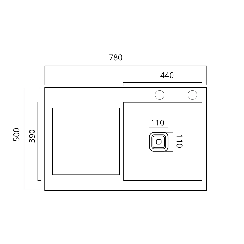 Размеры мойки 780x500x220мм