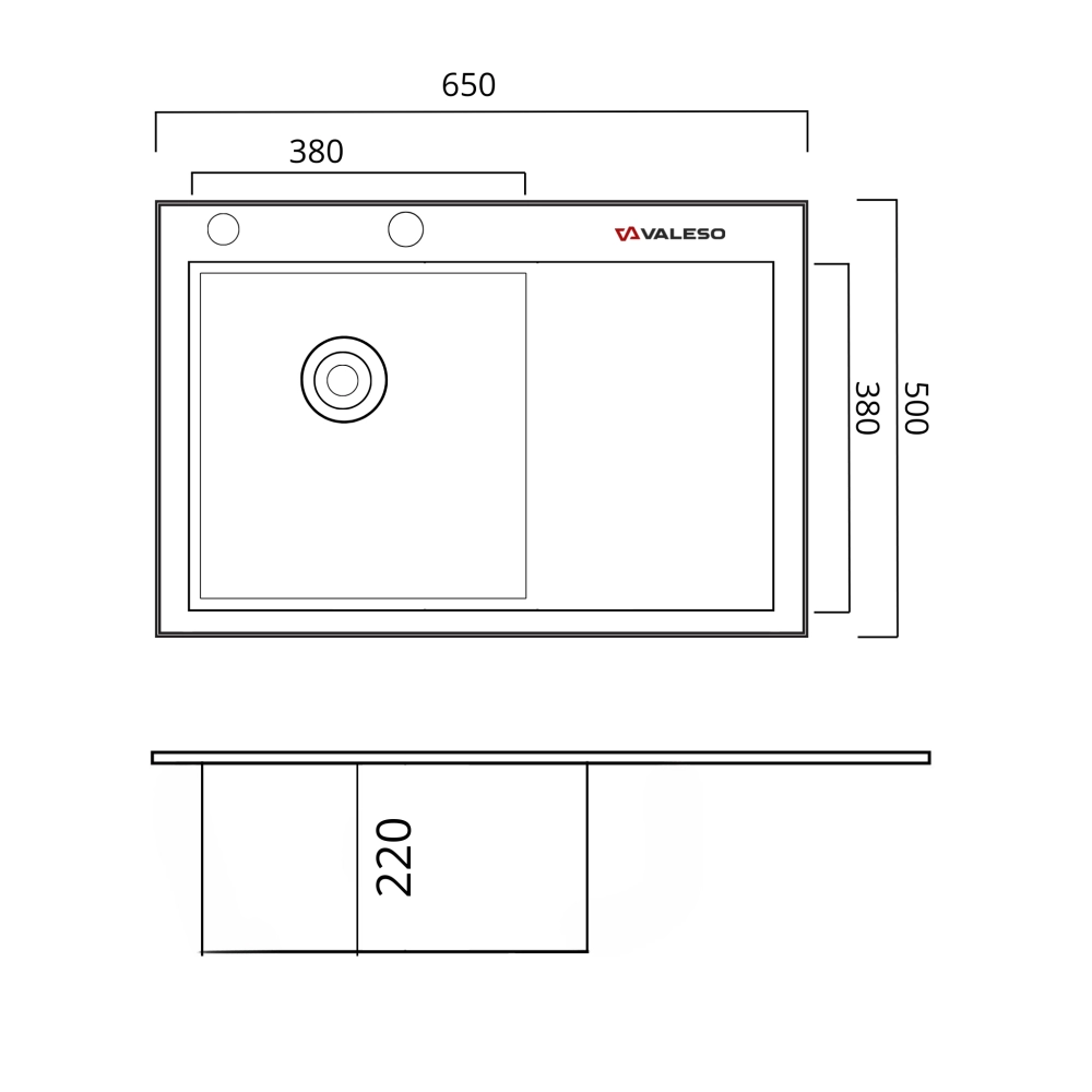 - оптимальный размер мойки 650х500х220 мм и чаши 380х380х220 мм обеспечивает пространство для ежедневных кухонных задач.