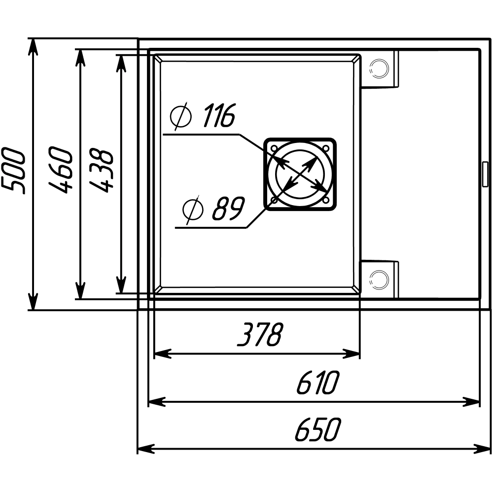 Размер мойки (ШхГхВ): 645х495х200 мм.