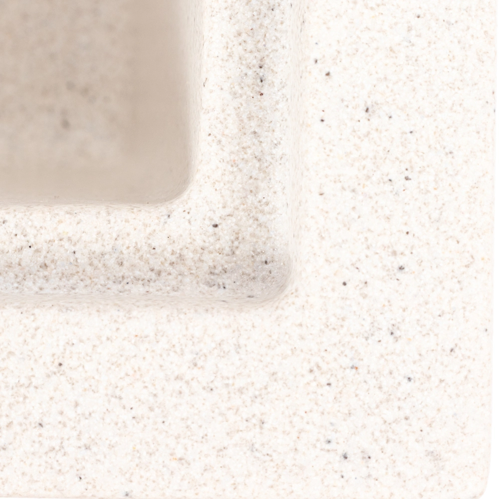 Модель 6050 SHERLIT имеет элегантный и сдержанный дизайн с матовой текстурой. Цвет белая в крапинку - это светлый, яркий оттенок белого, дополненный мелкими, едва заметными вкраплениями, имитирующими естественную структуру камня и добавляющими глубины и интересного визуального эффекта. Этот узор делает мойку менее маркой, чем чисто белая, при этом сохраняя ее светлый вид. Высококачественный гранит обеспечивает исключительную устойчивость мойки к царапинам, ударам, высоким температурам (до 280°C) и агрессивным химическим веществам, что гарантирует ее долговечность и гигиеничность.