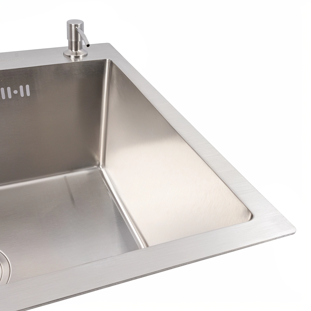 Мойка для кухни VALESO изготовлена из нержавеющей стали SUS 201, что гарантирует ее долговечность. Покрытие мойки защищает ее от царапин потемнения и налета. Такая кухонная мойка не опасается высоких температур и влияния средств бытовой химии.