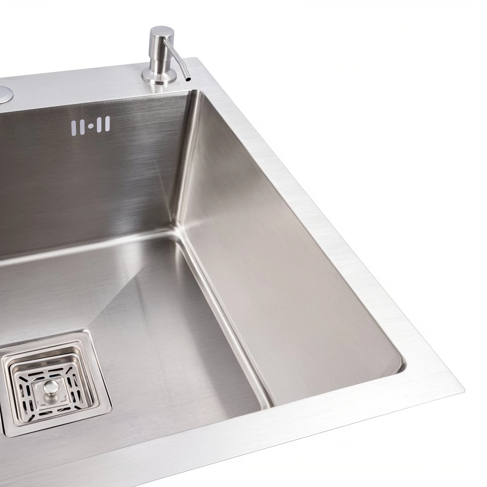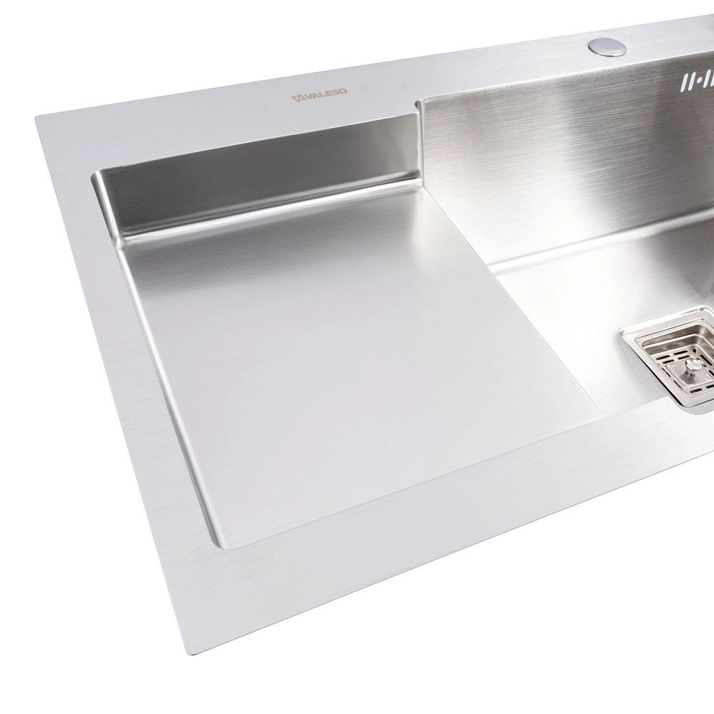 Мойка VALESO Handmade отличается утонченным дизайном и надежной конструкцией из нержавеющей стали, которая прекрасно впишется в любой интерьер. Этот материал обеспечивает высокую устойчивость к коррозии, износу и перепадам температур, гарантируя долговечность и легкость в уходе. Расположение чаши справа обеспечивает удобство для правшей, а углубленная полка предоставляет дополнительное пространство для сушки посуды или подготовки продуктов.
