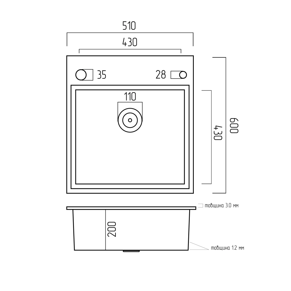 Мойка имеет чашу глубиной 200 мм, что обеспечивает удобство ежедневного использования. Тип установки – универсален как на столешницу, так и под столешницу. Для монтажа мойки требуется ширина столешницы не менее 550 мм.