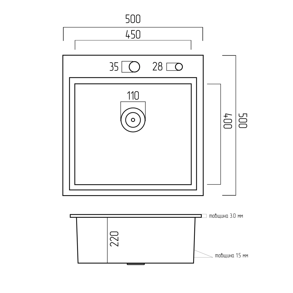 Отзывы покупателей о Кухонная мойка Platinum Handmade PVD черная 500х500х220 (3,0/1,5 мм + дозатор в комплекте)