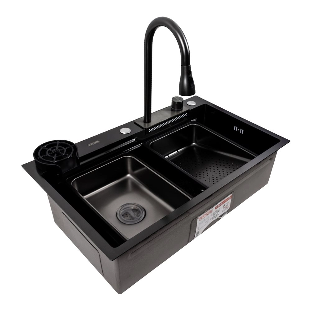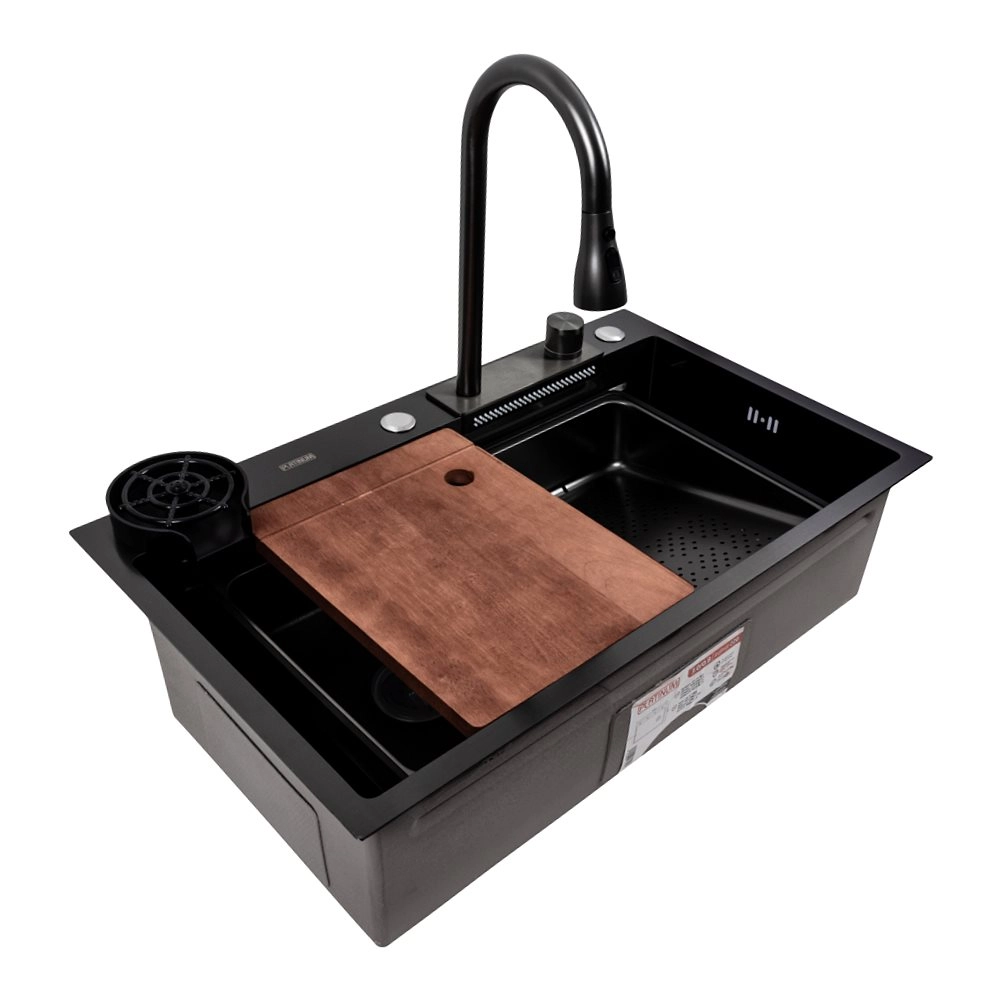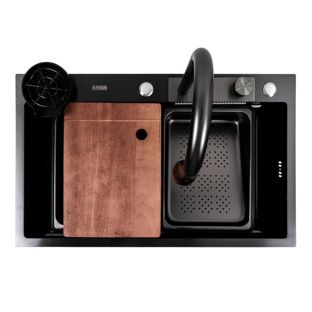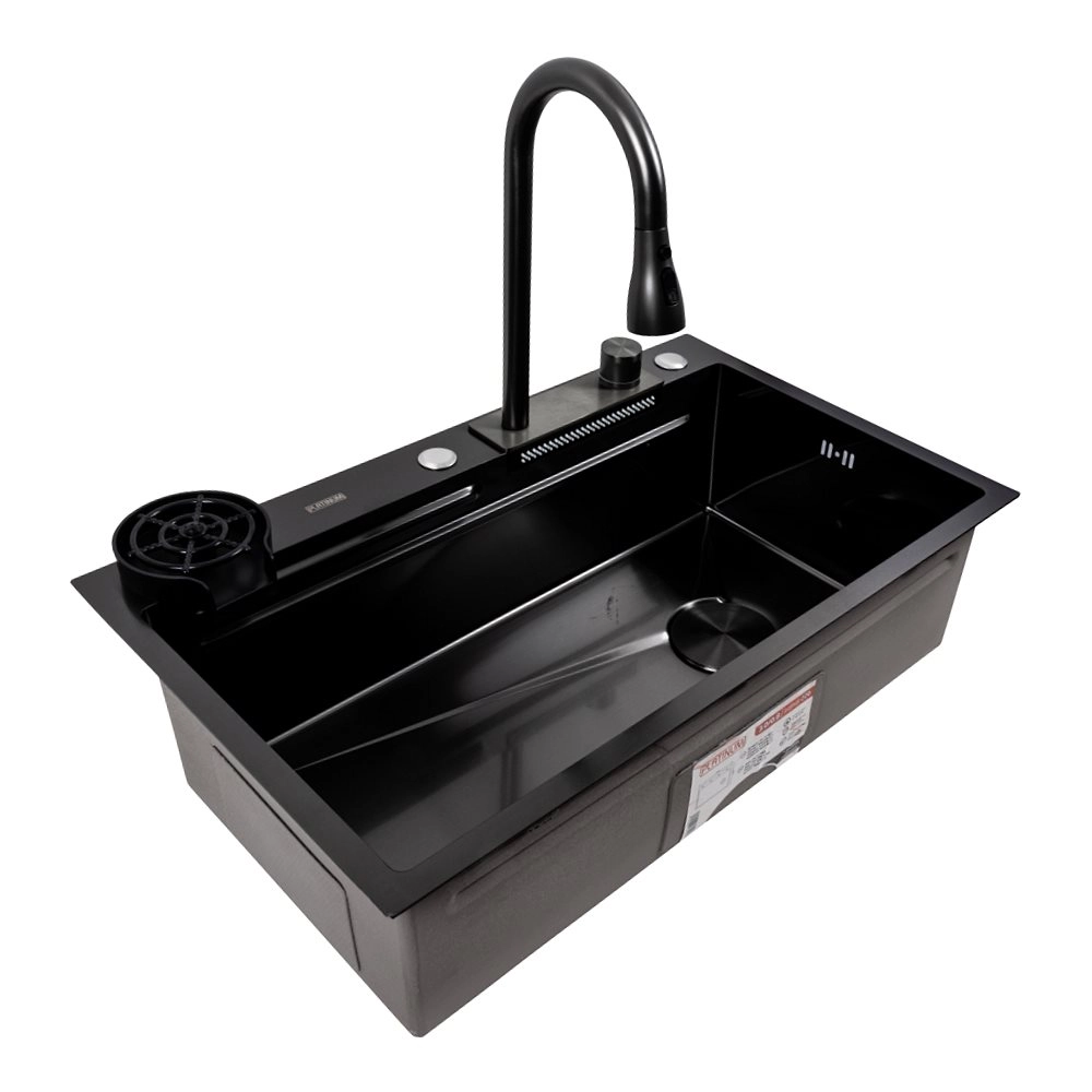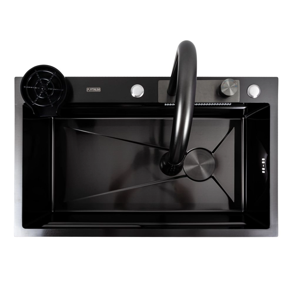 Кухонная мойка CM 75*46А PVD черная Platinum Handmade "Водопад"