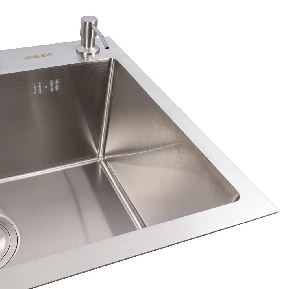 Мойка для кухни VALESO изготовлена из нержавеющей стали SUS 201, что гарантирует ее долговечность. Покрытие мойки защищает ее от царапин потемнения и налета. Такая кухонная мойка не боится высоких температур и воздействия средств бытовой химии.