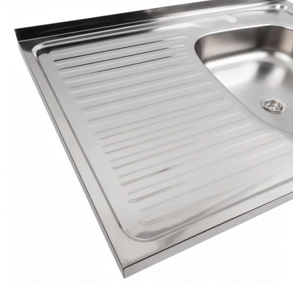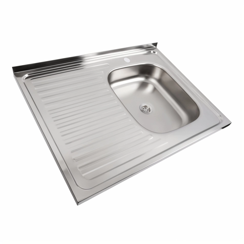 Нержавеющая сталь SUS 201 хорошо сочетается с фактурой различных материалов и цветом кухонного интерьера. Мойка может иметь левое и правое крыло сушки (L или R) с соответствующим отверстием для смесителя.
