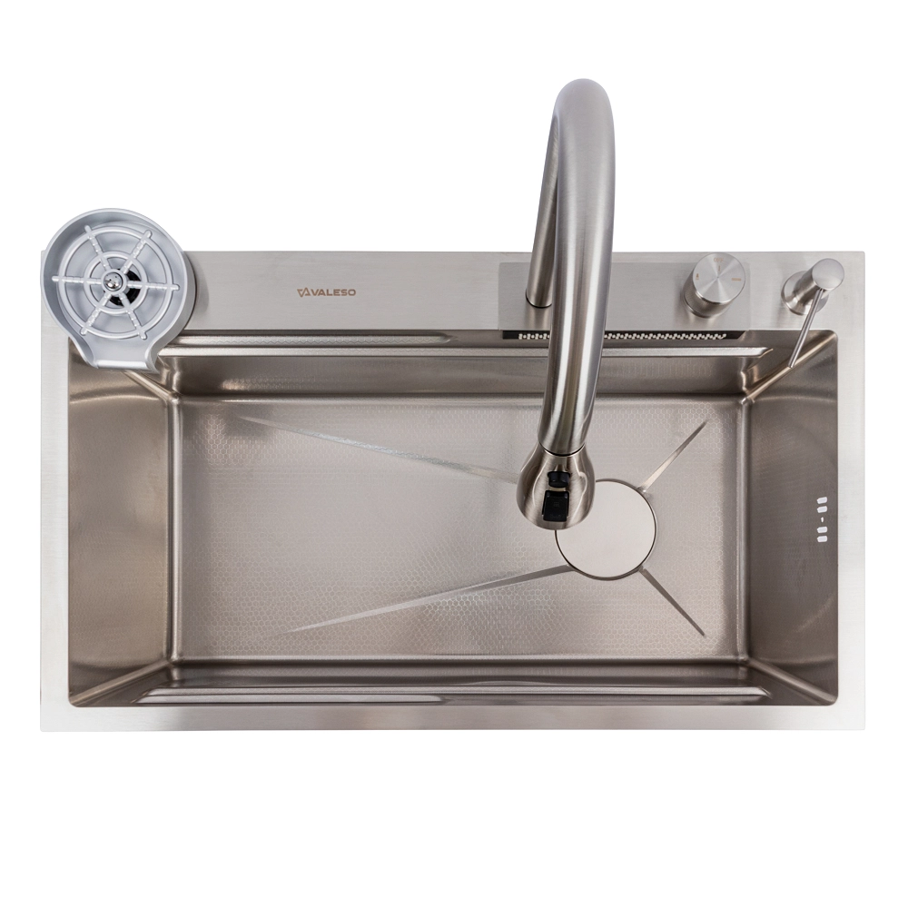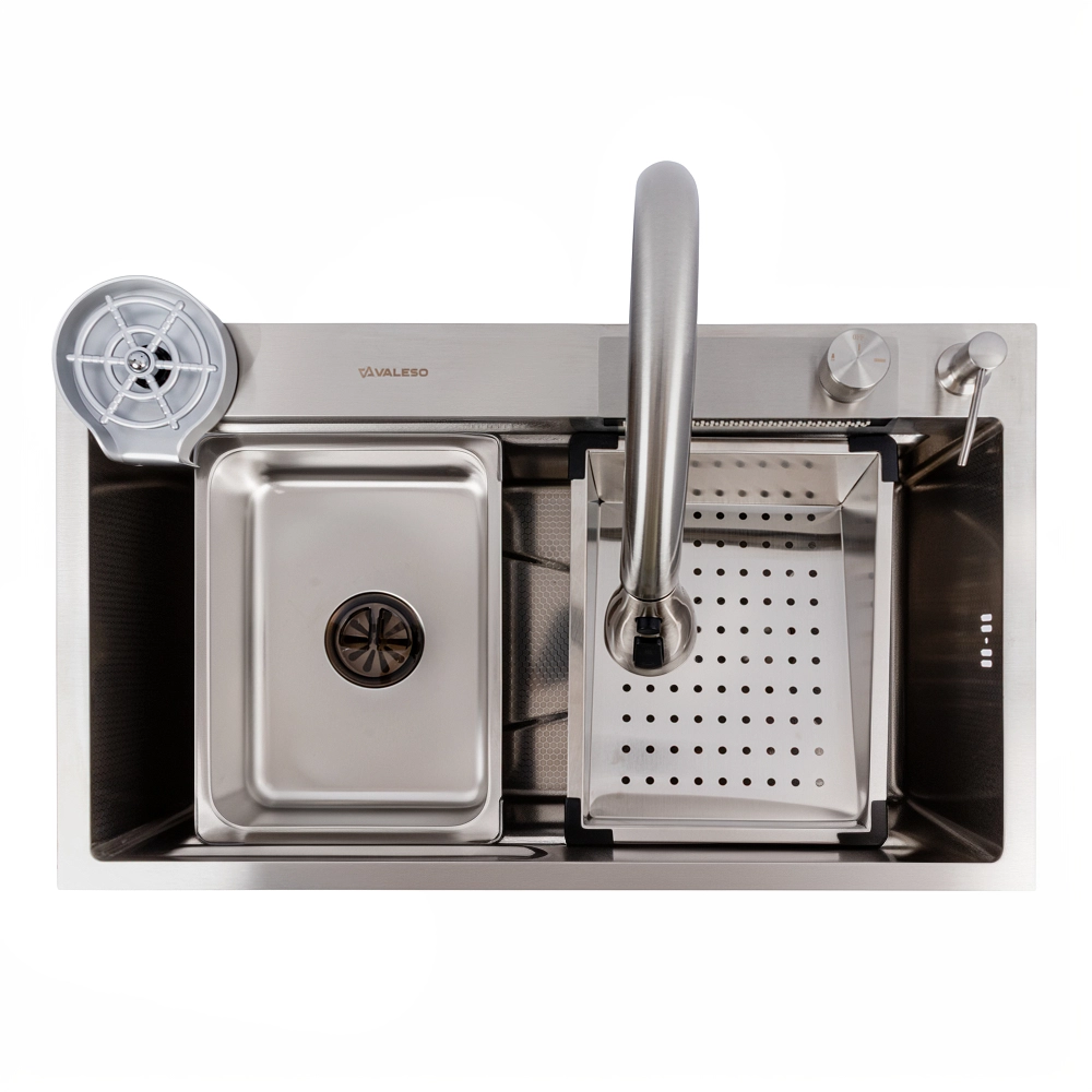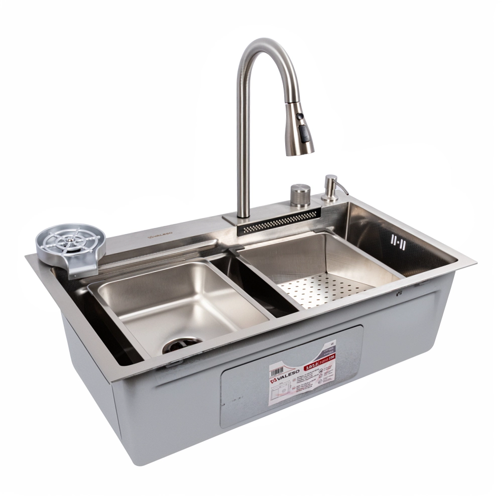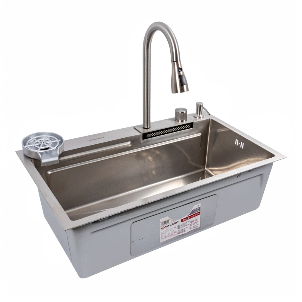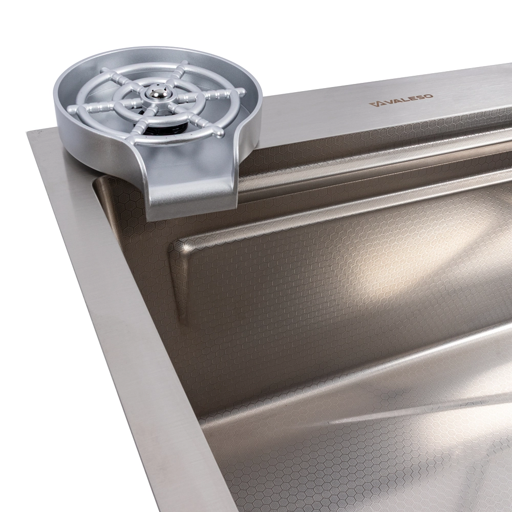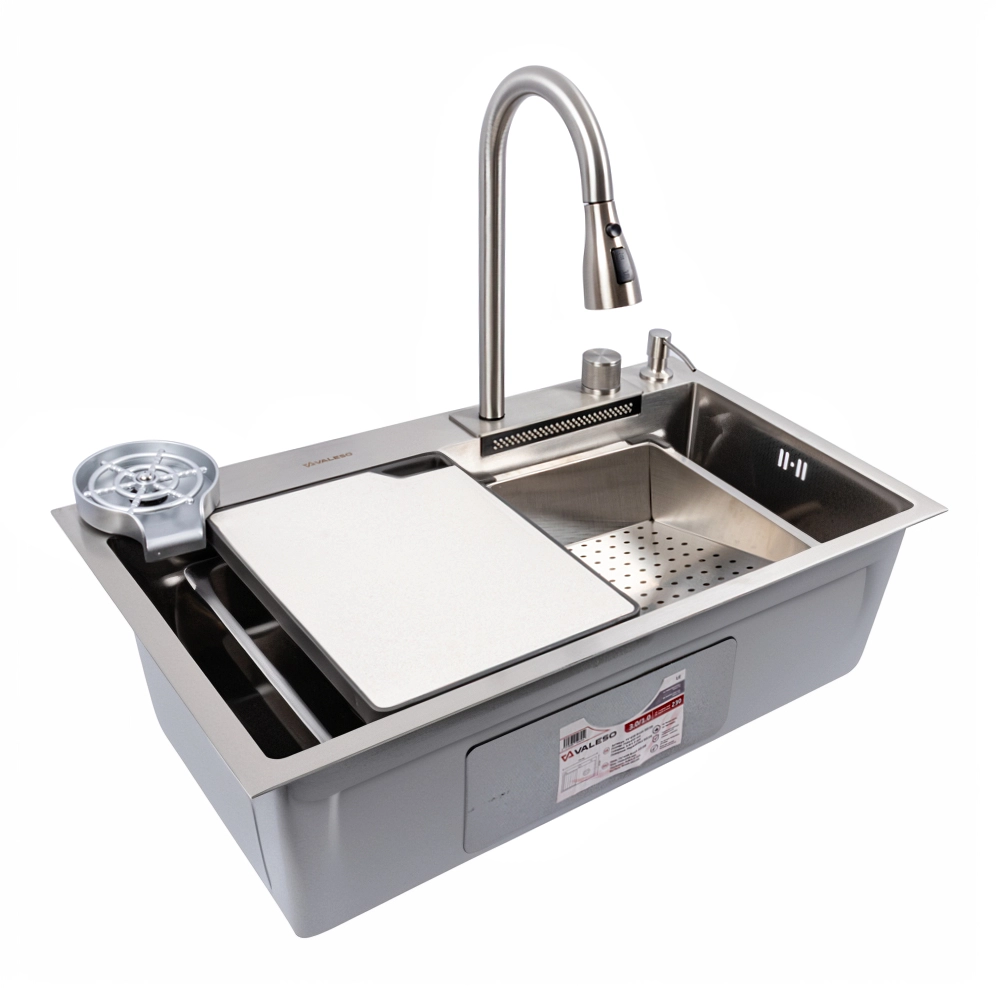Превратите свою кухню в многофункциональную рабочую станцию с инновационной мойкой VALESO Handmade "Водопад" в элегантном сатиновом исполнении. Эта модель сочетает в себе стильный современный дизайн и полный набор функций, делающих кулинарные процессы максимально комфортными.