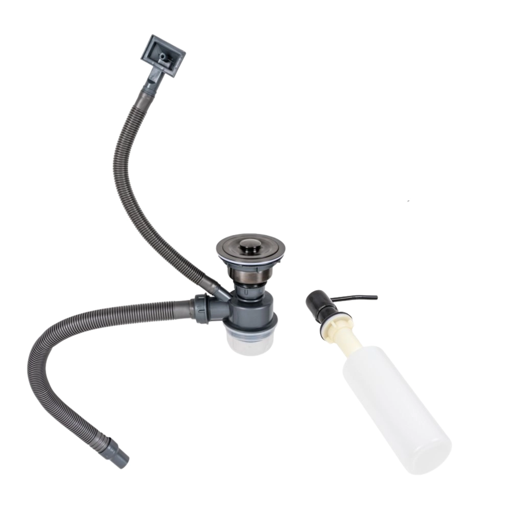 Комплектация мойки: дозатор, сифон, крепеж.