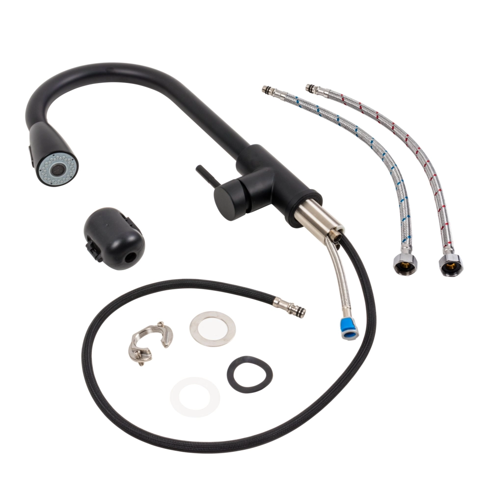 Изготовлен из нержавеющей стали, этот смеситель отличается стильным черным цветом, который придаст вашей кухне неповторимый шарм. Переключатель на разные виды подачи воды позволит вам регулировать поток воды по вашим потребностям.