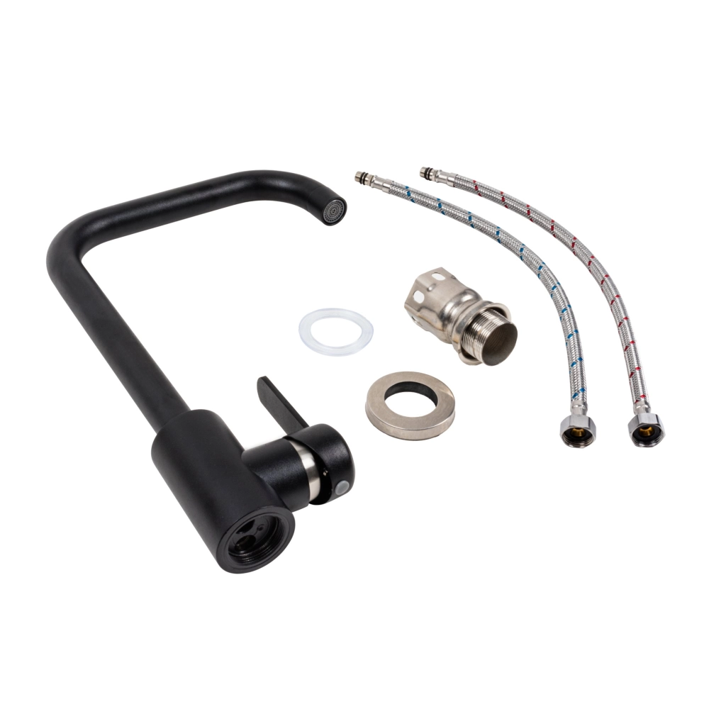 Смеситель Platinum KT 11 Черный матовый имеет эргономичный дизайн, что позволяет легко маневрировать водным потоком. Высота смесителя 320 мм и длина излива 173 мм делают его удобным для использования с разными размерами посуды.