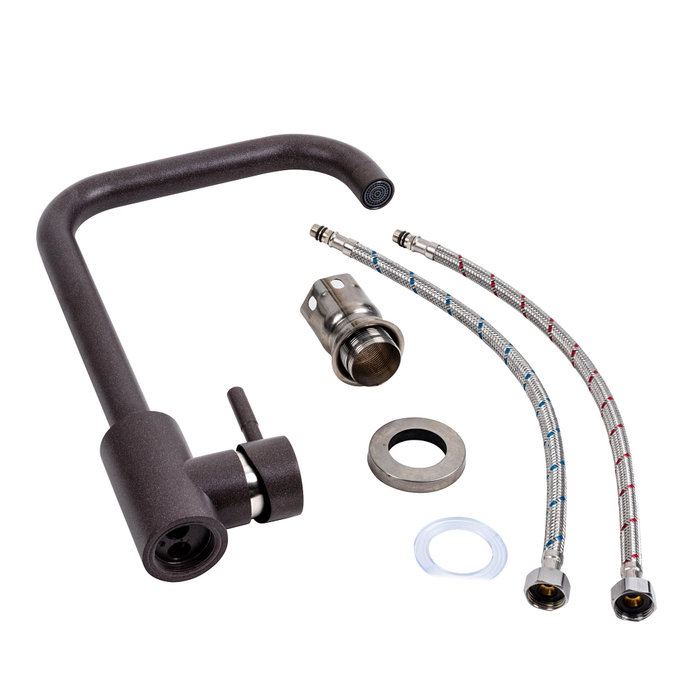 Смеситель кухонный Platinum NS02B (3008B-NA) гренадин – это изысканный и функциональный аксессуар для вашей кухни, предназначенный для обеспечения комфорта и эффективности при приготовлении и мытье посуды. Вот больше информации об этом смесителе: