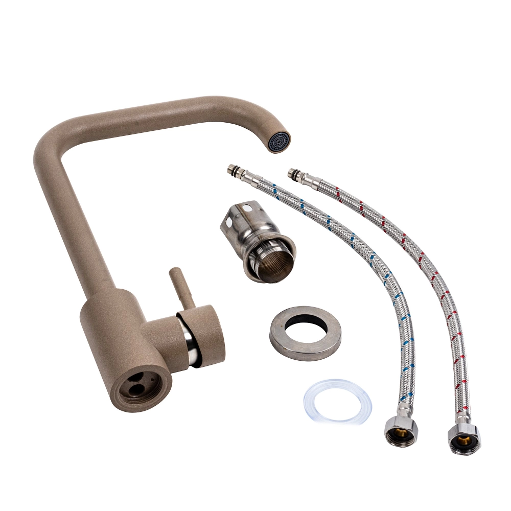 Смеситель кухонный Platinum NS02B (3008B-NA) Титан – это изысканный и функциональный аксессуар для вашей кухни, предназначенный для обеспечения комфорта и эффективности во время приготовления и мытья посуды. Вот больше информации об этом смесителе:
